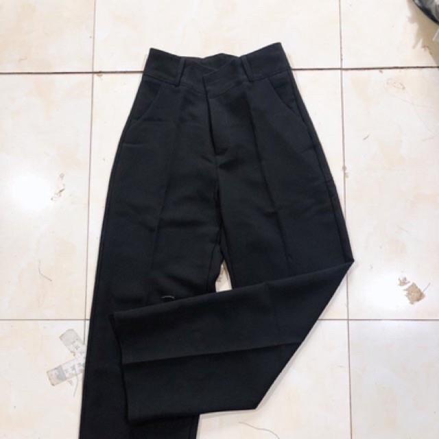 ₫75.000: quần ống rộng suông nữ lưng cao khóa trước 1 khuy vải tuyết mưa.
