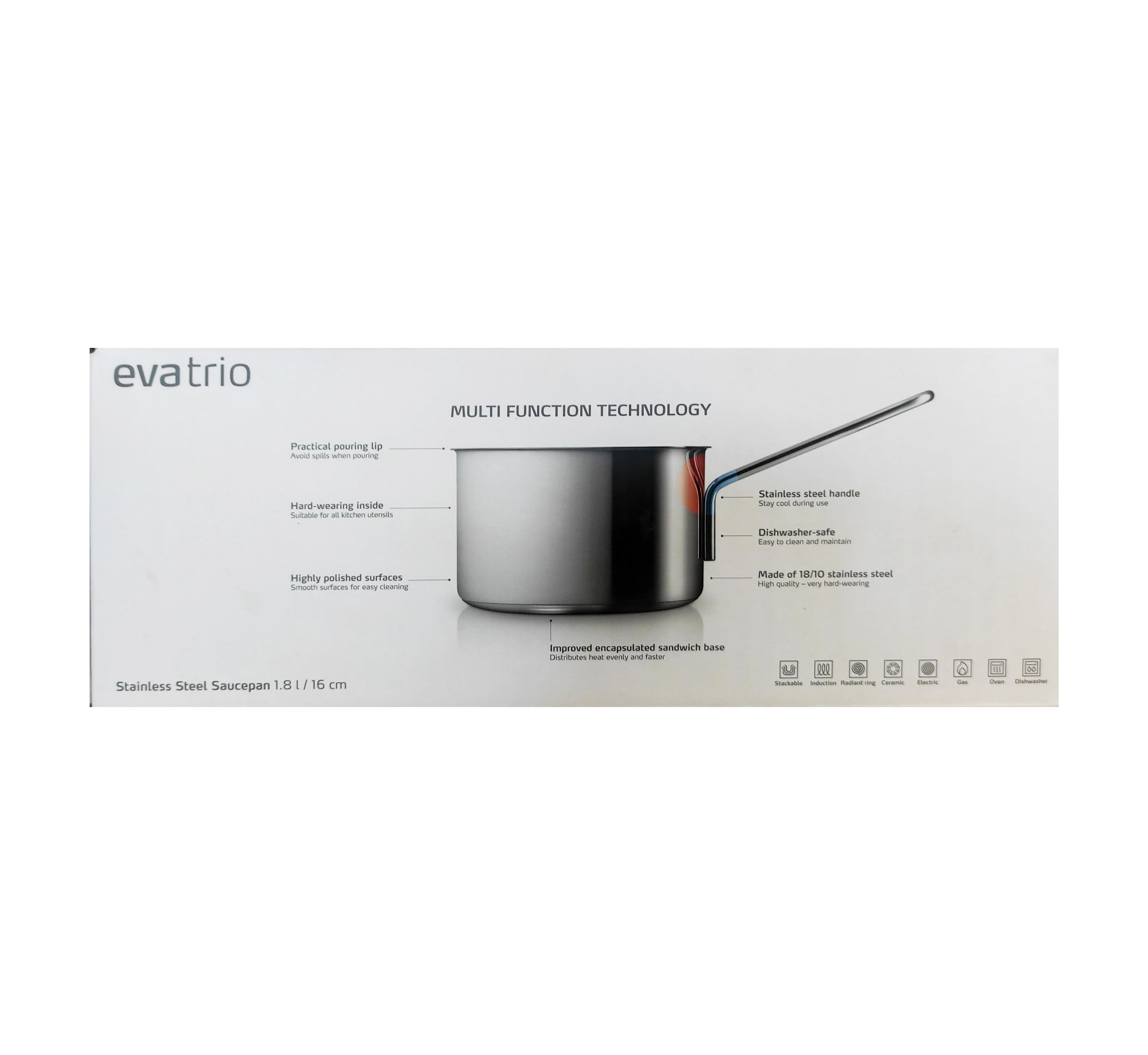 Nồi xoong 16cm 1.8L Eva Solo, dòng thép không gỉ. Chất lượng bền bỉ trong nhiều năm. Kích thước dễ sử dụng, tay cầm chắc chắn và cân đối. Thích hợp nấu hoặc làm nóng