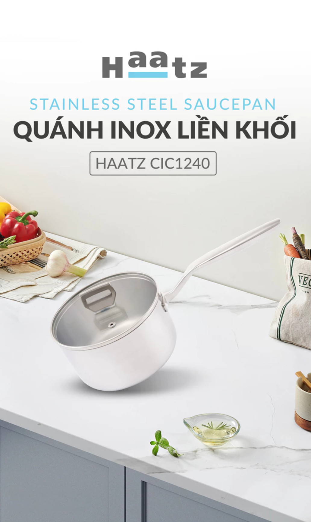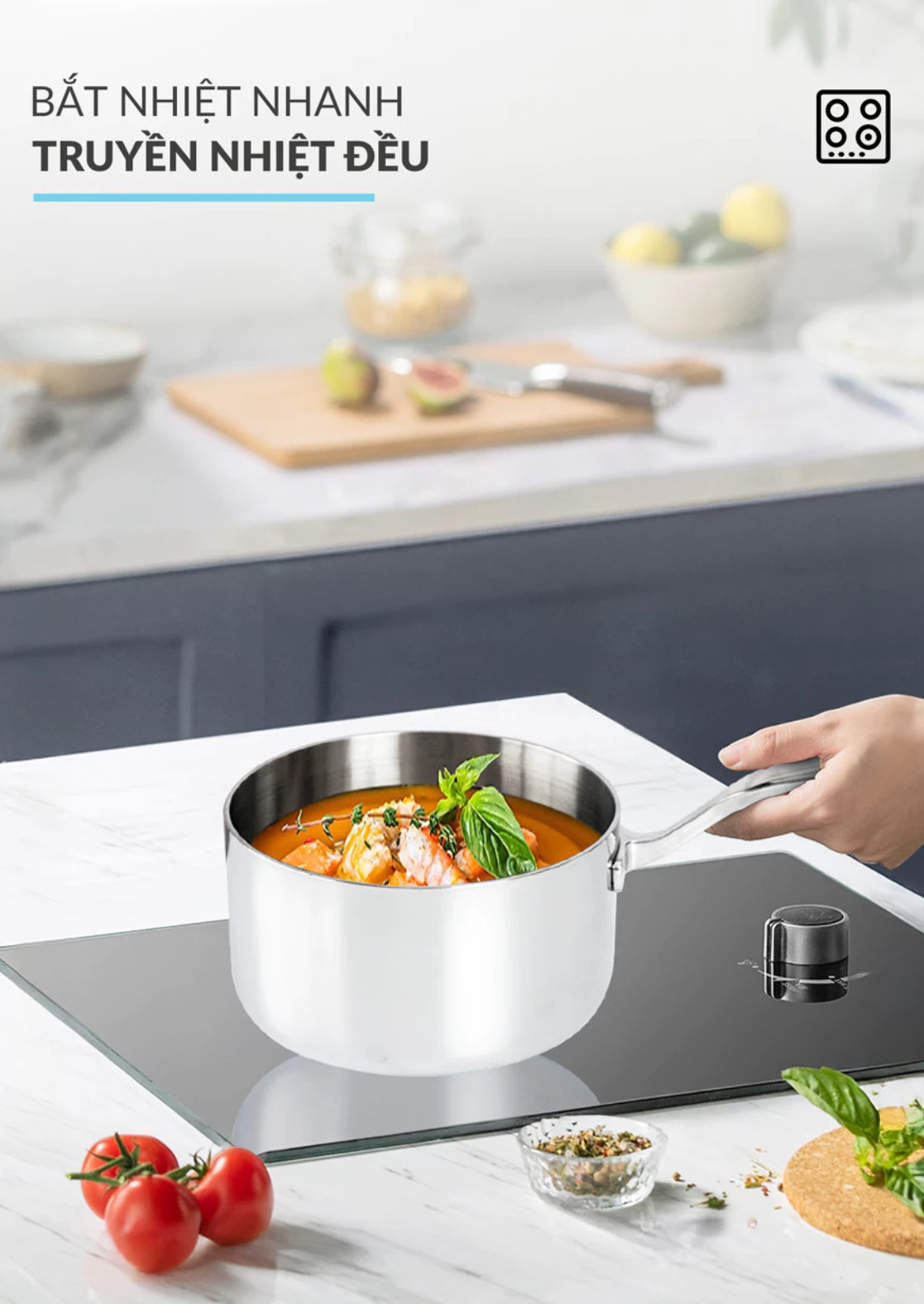 Chất Liệu: inox 316 (Lòng quánh), 430 (Thân Quánh Bên ngoài để bắt từ), 201 (Tay cầm)
