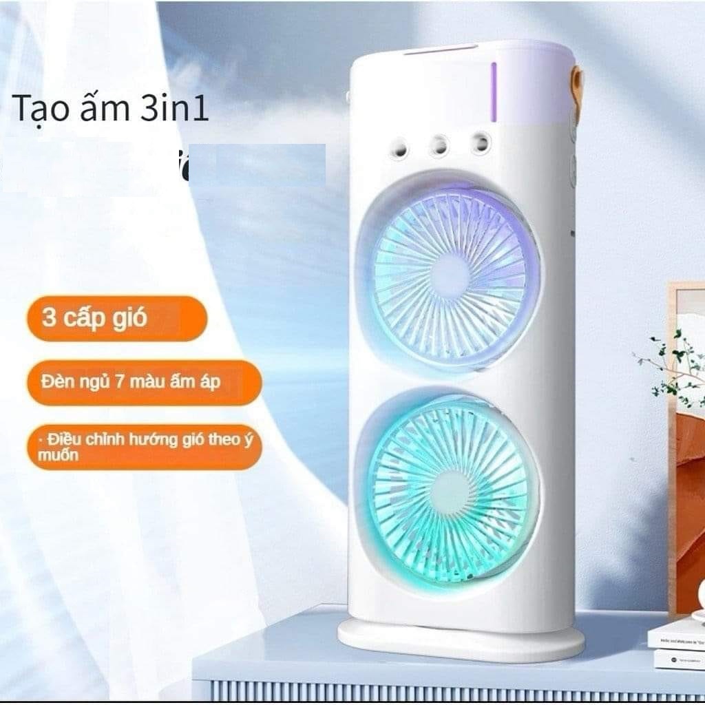 ✨Quạt Hơi Nước, Quạt Phun Sương Mini, Quạt Để Bàn 2 Tầng Có Đèn Led Tiện Lợi, Màu Ngẫu Nhiên - Hàng Chính Hãng
