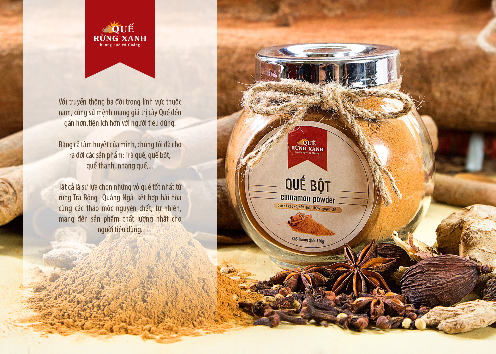 Bột quế tạo ra từ vỏ của cây quế khi đã xay nhuyễn, thơm và giữ được mùi hương lâu, được làm từ 100% bột quế nguyên chất từ rừng Trà Bồng Quảng Ngãi. Theo
