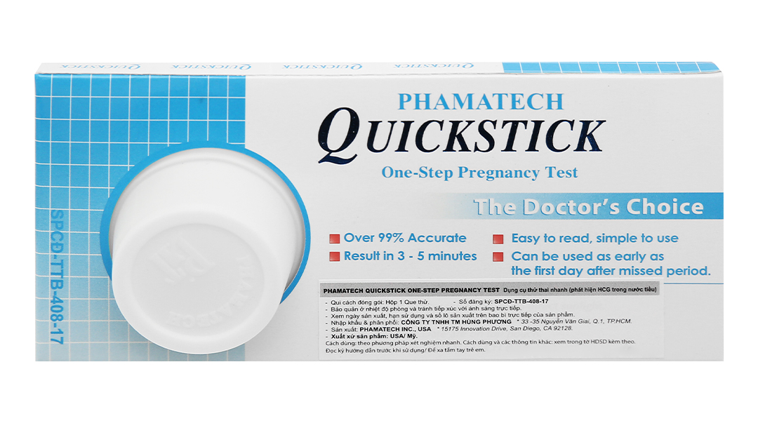 Quickstick là thương hiệu que thử thai đầu tiên ở Việt Nam, được Công ty PHAMATECH sản xuất 100% tại Hoa Kỳ, do Công ty TNHH TM Thành Kim Sơn Phamatech độc quyền phân phối.