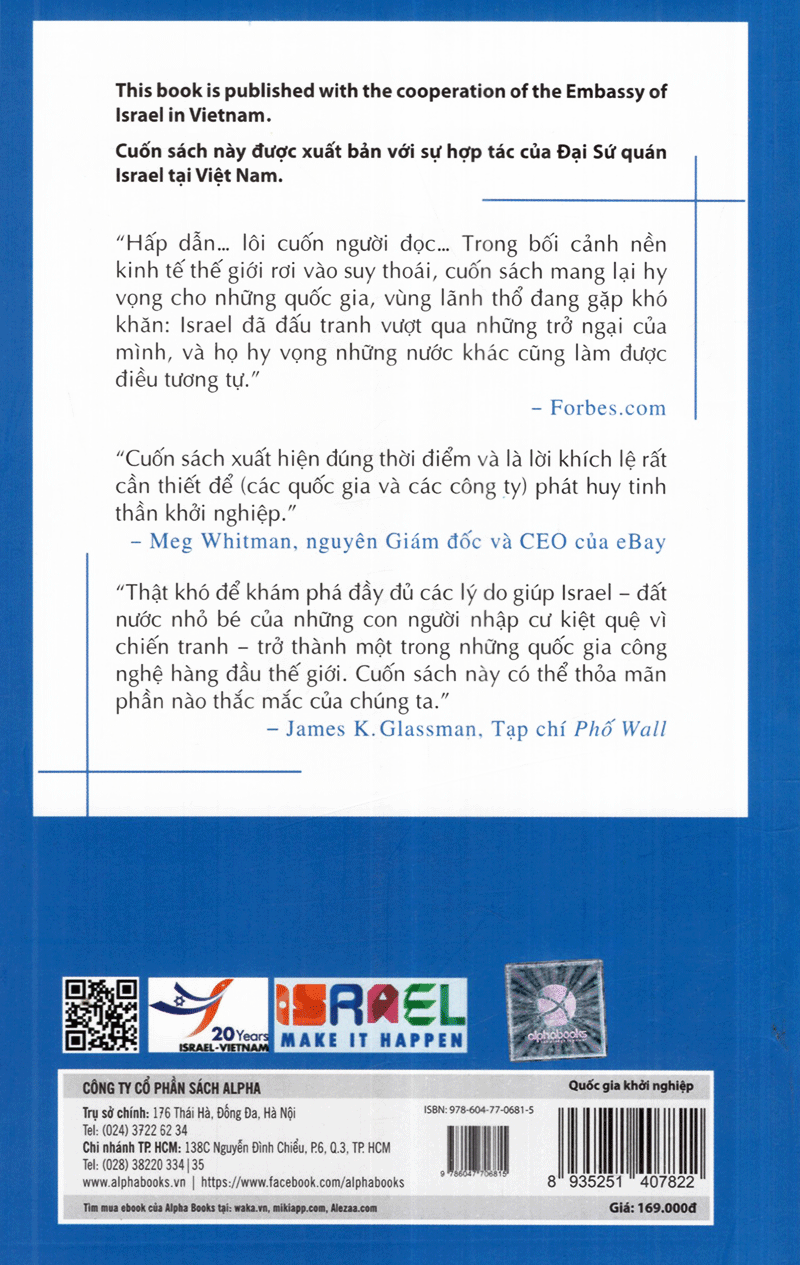 Với ngòi bút sắc sảo, phong phú và tập trung những lời nhận xét thực tế từ những doanh nhân thành công hàng đầu, “Quốc gia khởi nghiệp” đã đem đến những cái nhìn mới mẻ về con người và đất nước Israel, làm sáng tỏ phần nào những thành công tưởng chừng như không tưởng của đất nước nhỏ bé này. Cá tính quyết liệt, dám thách thức và sáng tạo không ngừng của những con người Do Thái lưu vong, chạy trốn và sống sót sau những cuộc thảm sát trong Chiến tranh thế giới thứ II, không cam chịu cuộc sống nghèo khó, họ đã cùng với những người theo Chủ nghĩa Phục quốc Do Thái gây dựng và bảo vệ đất nước Israel bằng chính sức lực của mình và khiến cả thế giới phải kinh ngạc.