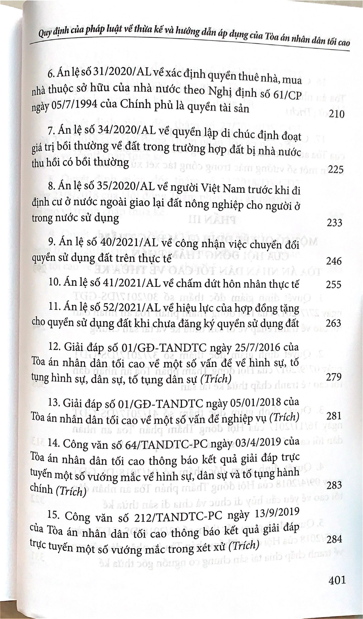 - Một số án lệ và công văn hướng dẫn nghiệp vụ của Tòa án nhân dân tối cao về thừa kế III. Một số quyết định giám đốc thẩm của Hội đồng thẩm phán tòa án nhân dân tối cao về thừa kế