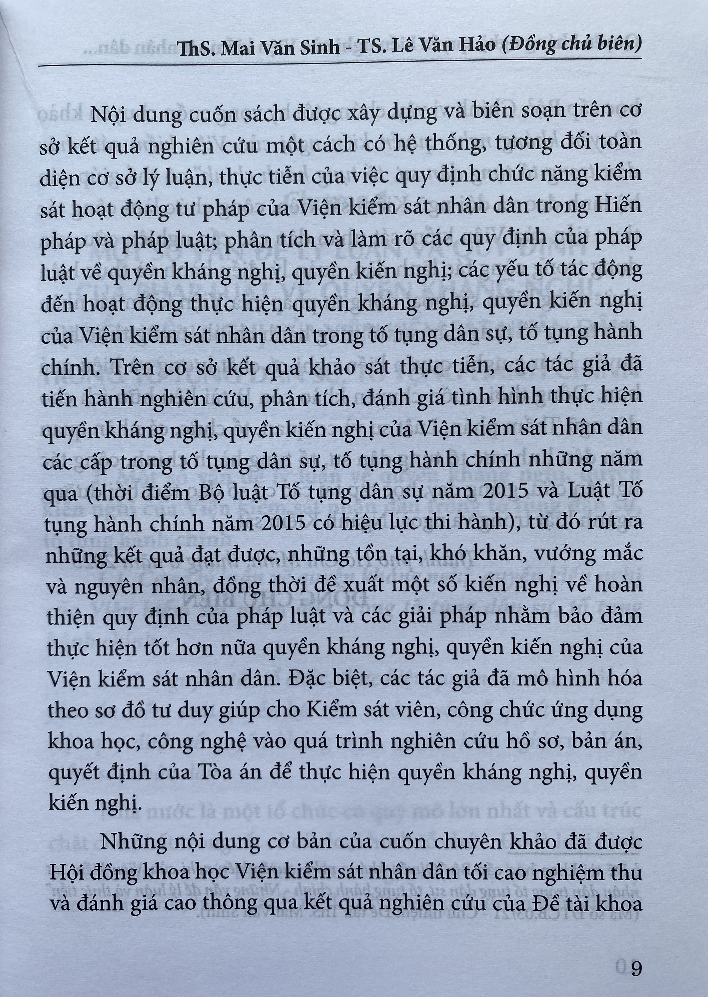 Nhà xuất bản Tư pháp xuất bản cuốn chuyên khảo "Quyền kháng nghị, quyền kiến nghị của Viện kiểm sát nhân dân trong tố tụng dân sự, tố tụng hành chính".