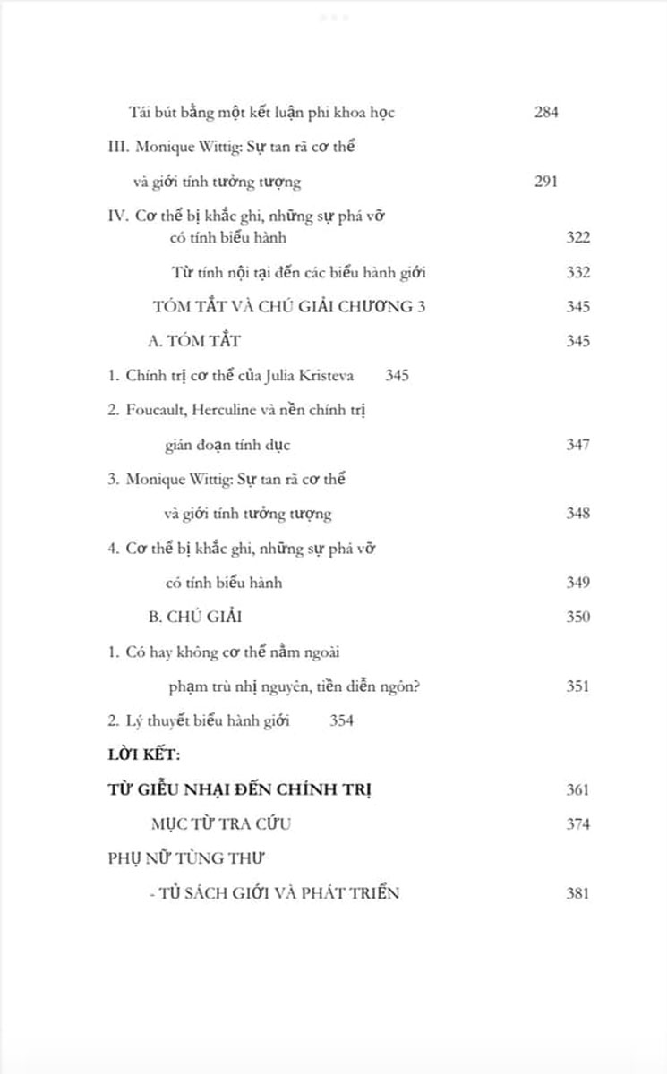 “Rắc rối giới cố gắng xác định chỗ đứng cho những vị trí nằm trên đường biên sống còn của đời sống học thuật. Vấn đề không phải là để tiếp tục sống bên lề, mà để tham gia vào bất cứ một mạng lưới hay vùng ngoại biên nào nảy sinh từ các trung tâm học thuật quyền uy và góp phần dịch chuyển chúng. Sự phức tạp của giới đòi hỏi một tập hợp diễn ngôn đa ngành và hậu ngành để kháng cự việc thuần hóa nghiên cứu giới và phụ nữ trong học thuật, cũng như đổi mới ý niệm về phê bình nữ quyền.” (Trích Lời tựa [1990])