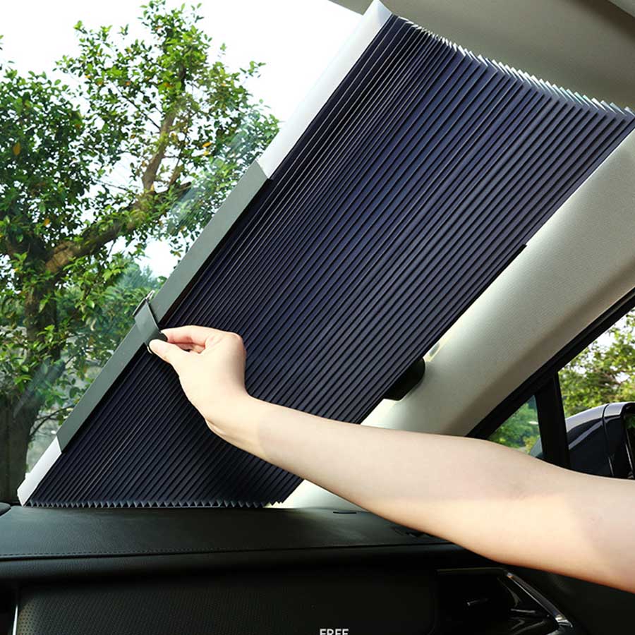 Rèm Che Nắng Kính Lái Ô Tô Tráng Nhôm Cách Nhiệt – Xếp Gọn Tiện Lợi Rèm che nắng kính lái ô tô thiết kế dạng rèm kéo, cấu tạo gồm các lá nhôm phủ