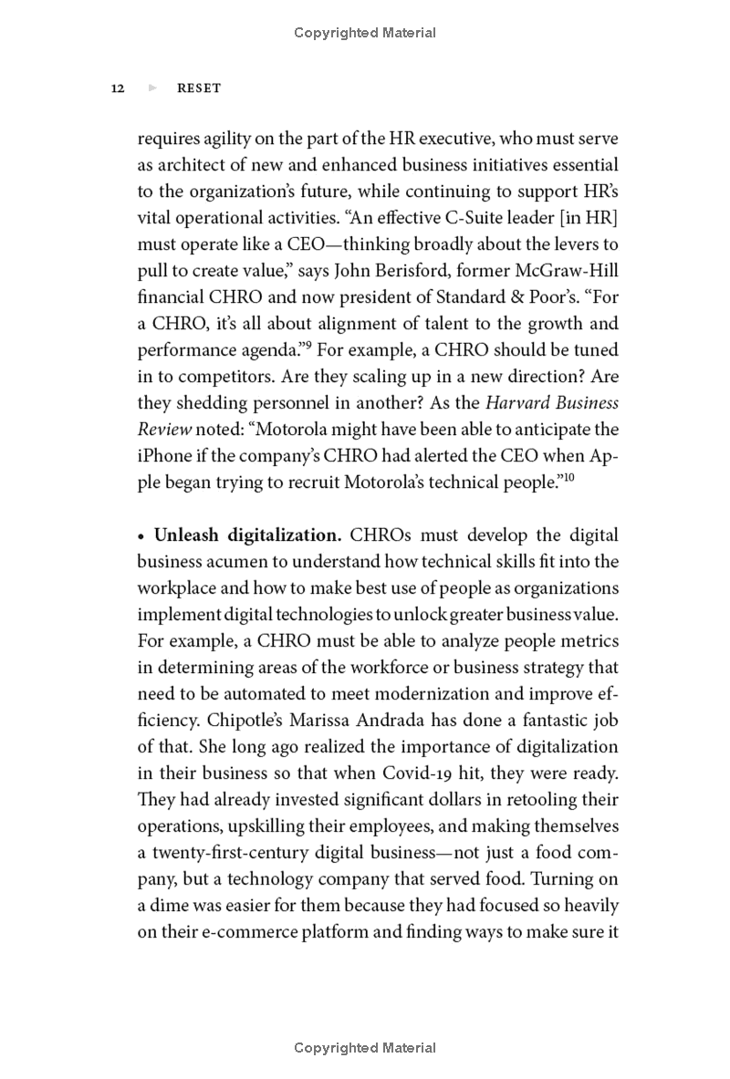 Part call to action, part strategic roadmap, Reset challenges business leaders’ underlying assumptions about workers and the workplace, delivers practical strategies for finding and keeping the talent needed to make businesses successful, and introduces dynamic tools to sustain that success over the long haul. Now is the time for leaders to completely reimagine, reorganize, and Reset their operations to create a more daring, resilient and sustainable future. This is the book that will guide them exactly when they most need it.