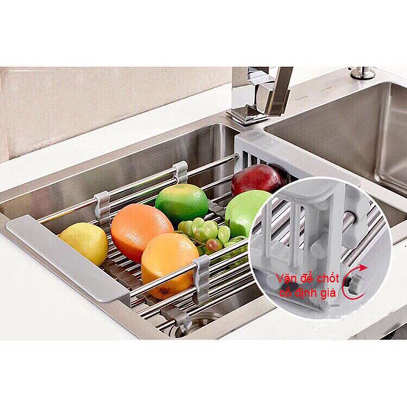 Sản phẩm có chốt an toàn thuận tiện, giúp cố định kích thước khay cho phù hợp với bồn rửa. Khó bám bẩn, dễ dàng vệ sinh chùi rửa. Kích thước: 31 x 15,5 x 9 cm (thu gọn); 49 x 15,5 x 9 cm (giãn ra tối đa).