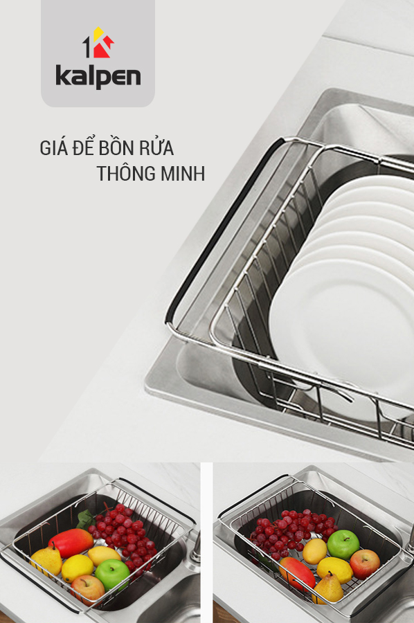 ✨Rổ Gác Inox Trên Chậu Rửa Chén Thông Minh Có Thể Điều Chỉnh Kích Thước (Kalpen KBRK33) - Hàng Chính Hãng