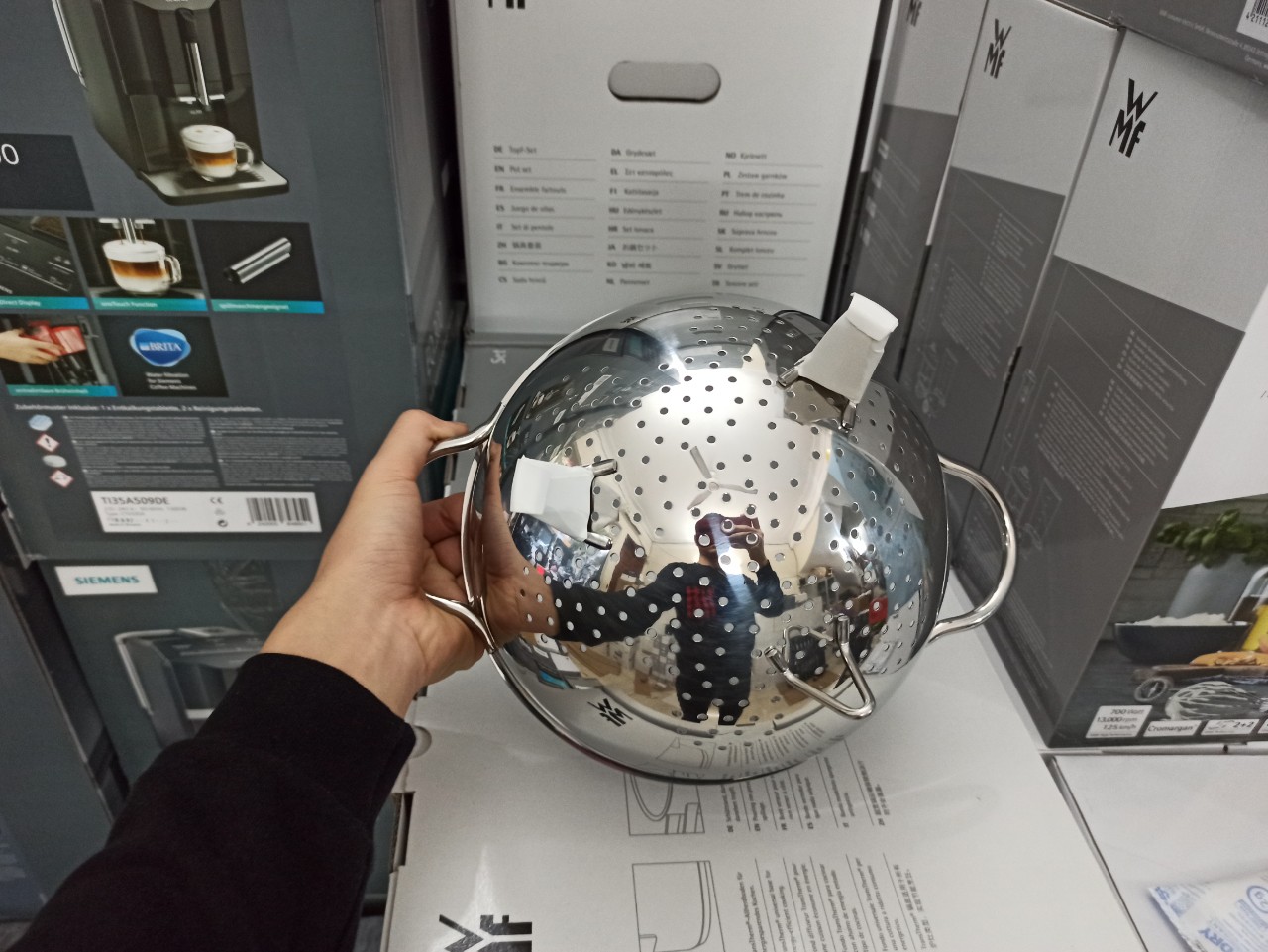 Đối với những người yêu thích thiết kế quan tâm đến chất lượng: cột màu đẹp và bền từ WMF đặc biệt linh hoạt. Dùng nó để rửa xà lách, rau và trái cây hoặc để nước từ mì ống hoặc khoai tây thoát nhanh qua các lỗ lớn. Các bộ lọc chất lượng cao làm bằng Cromargan không gỉ, không mùi vị, dễ chăm sóc và giữ hình dạng ngay cả khi sử dụng thường xuyên. Trong các phiên bản và thiết kế khác nhau, bộ lọc là những dụng cụ trợ giúp nhà bếp không thể phá hủy với chất lượng WMF tốt thông thường, giúp công việc làm bếp của bạn dễ dàng hơn trong một thời gian dài.