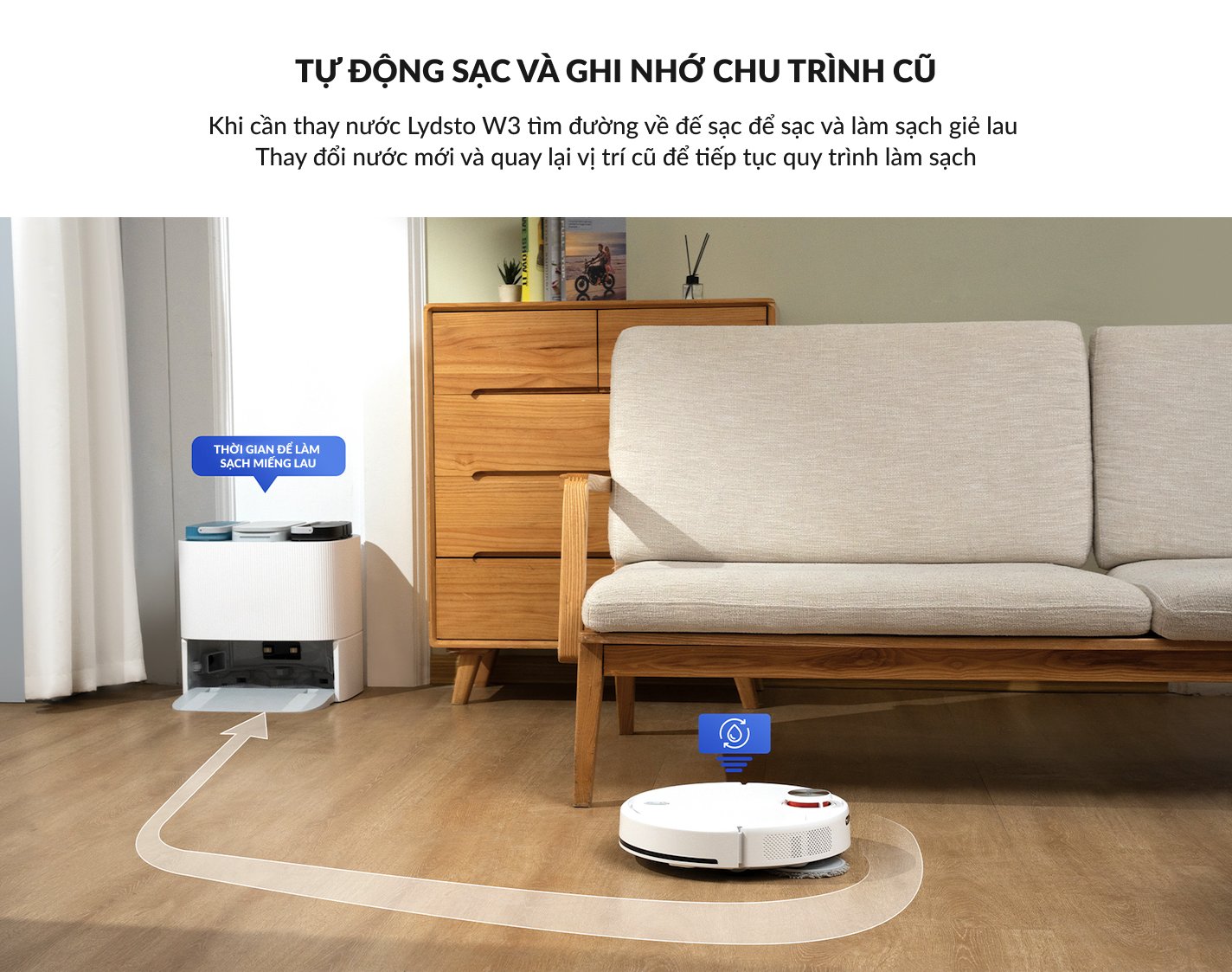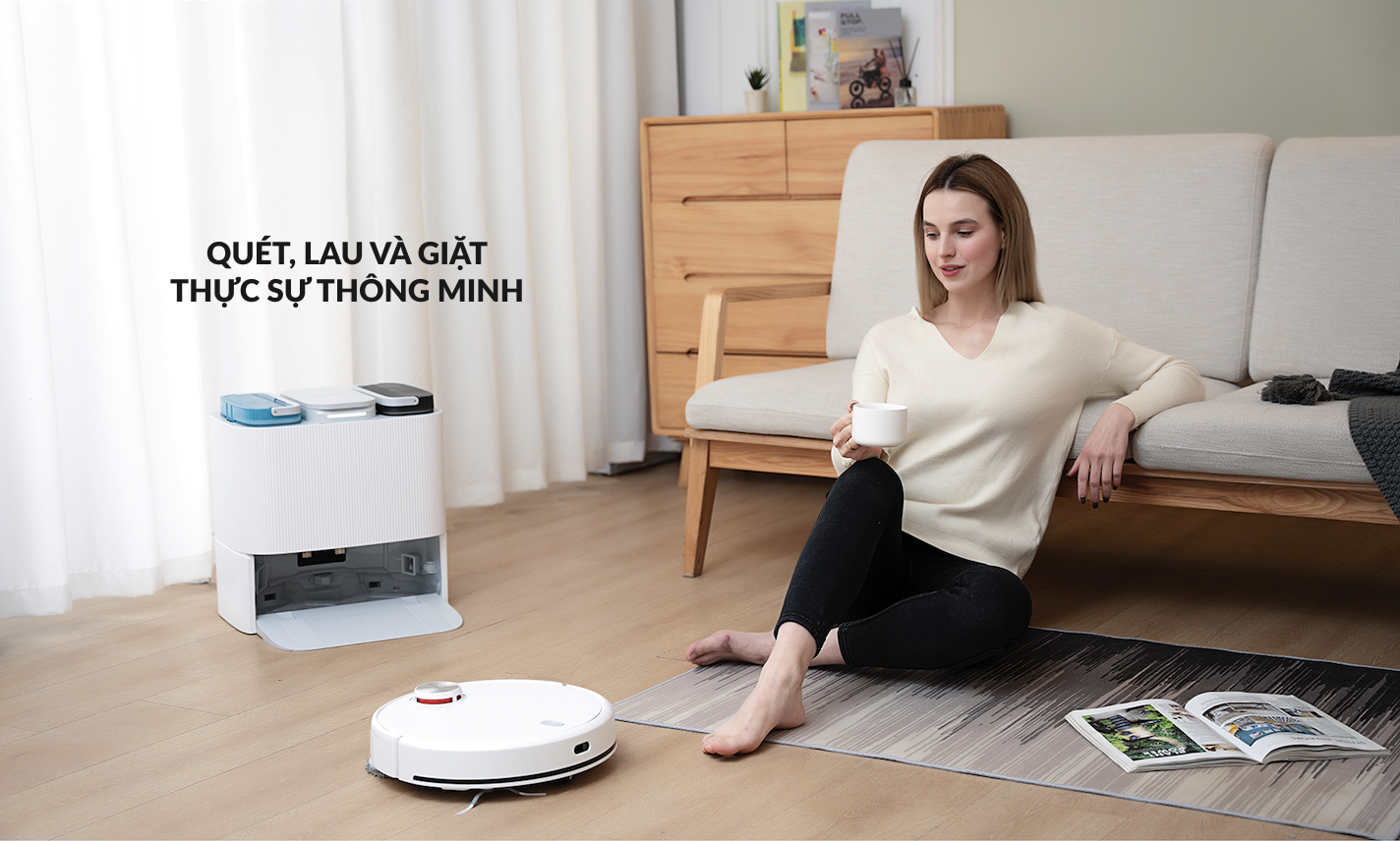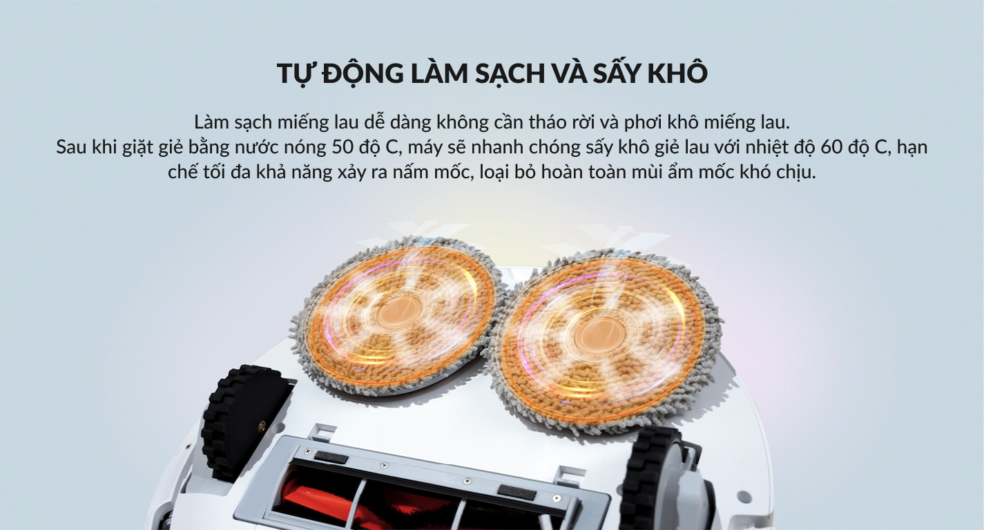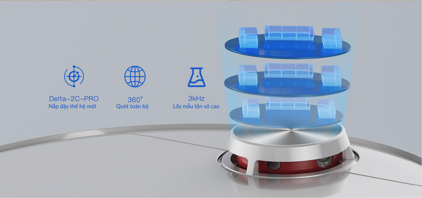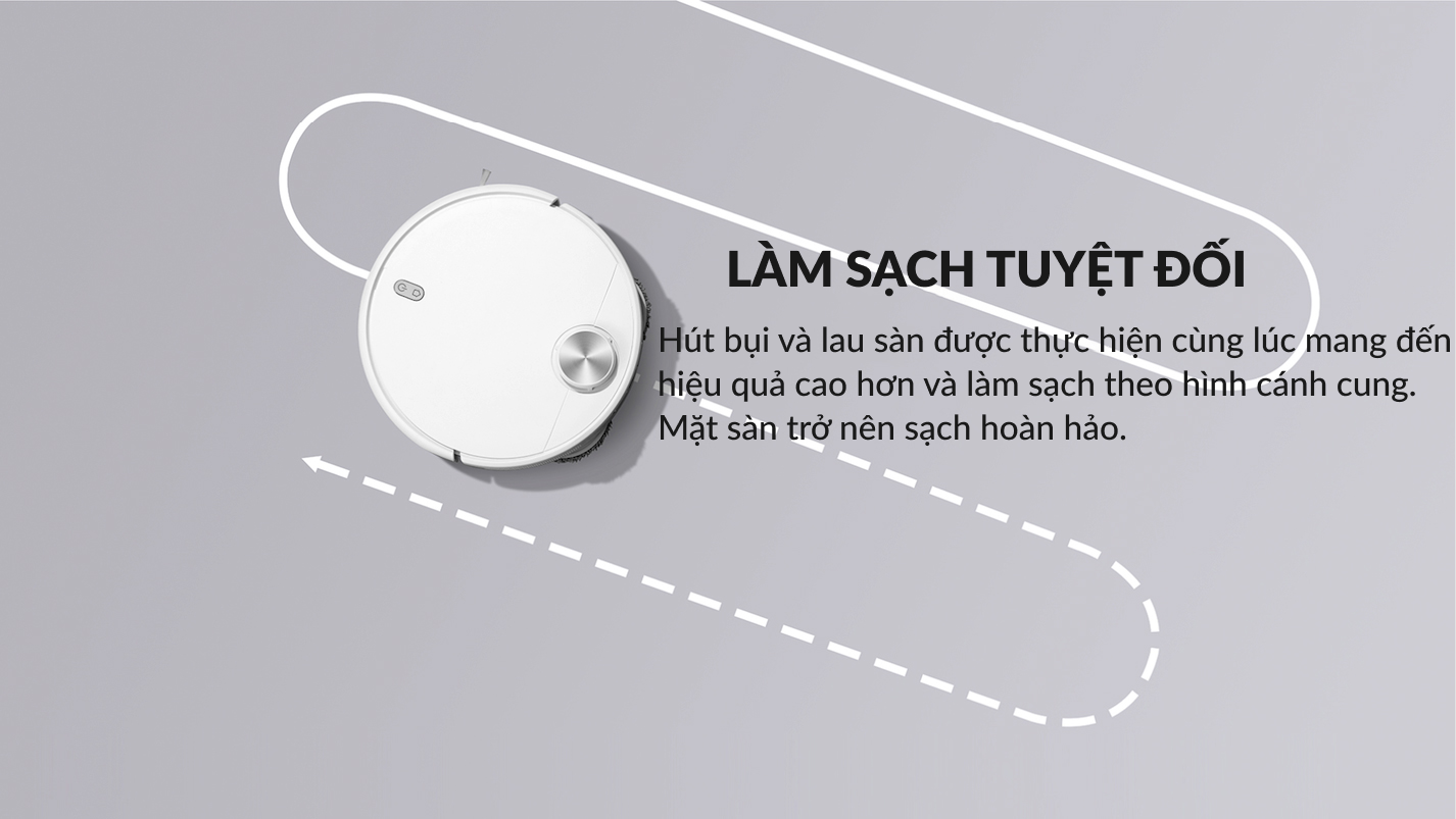 Tích hợp công nghệ Quét laser 3D định vị hệ thống hiển thị bản đồ toàn bộ ngôi nhà. Chốt quét: 2 chiếc Tự động quay về dock sạc, leo dốc 3cm. Thời gian sạc