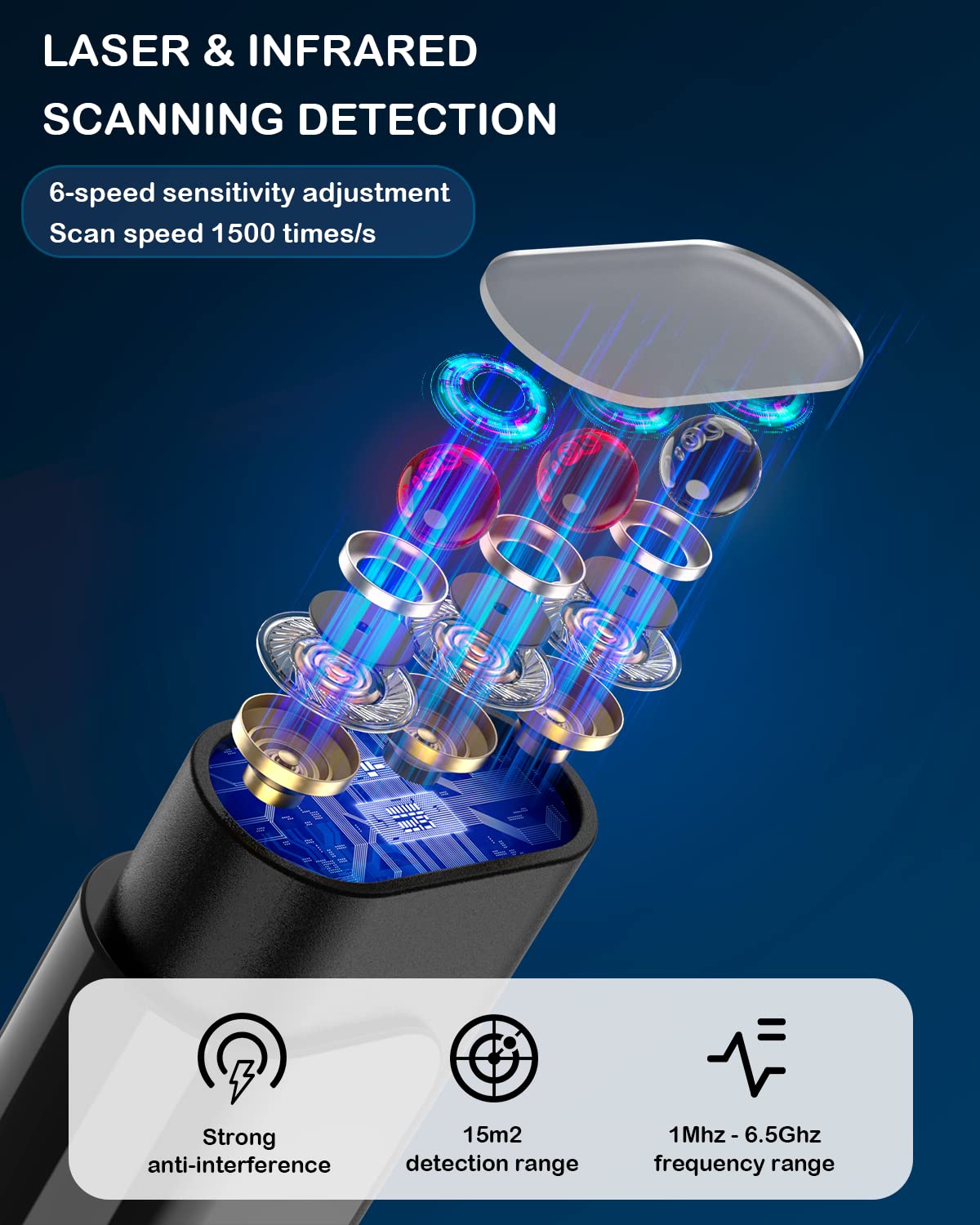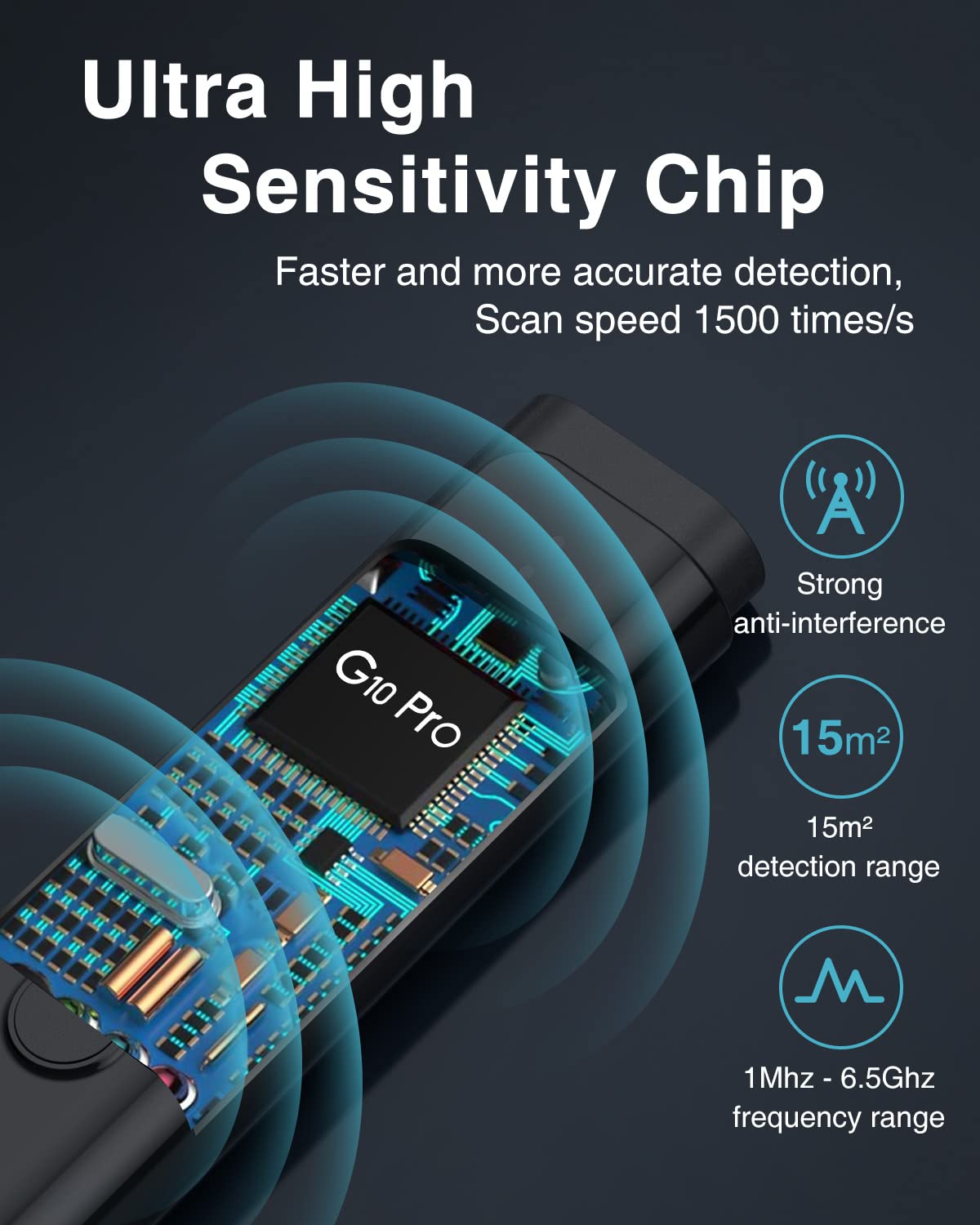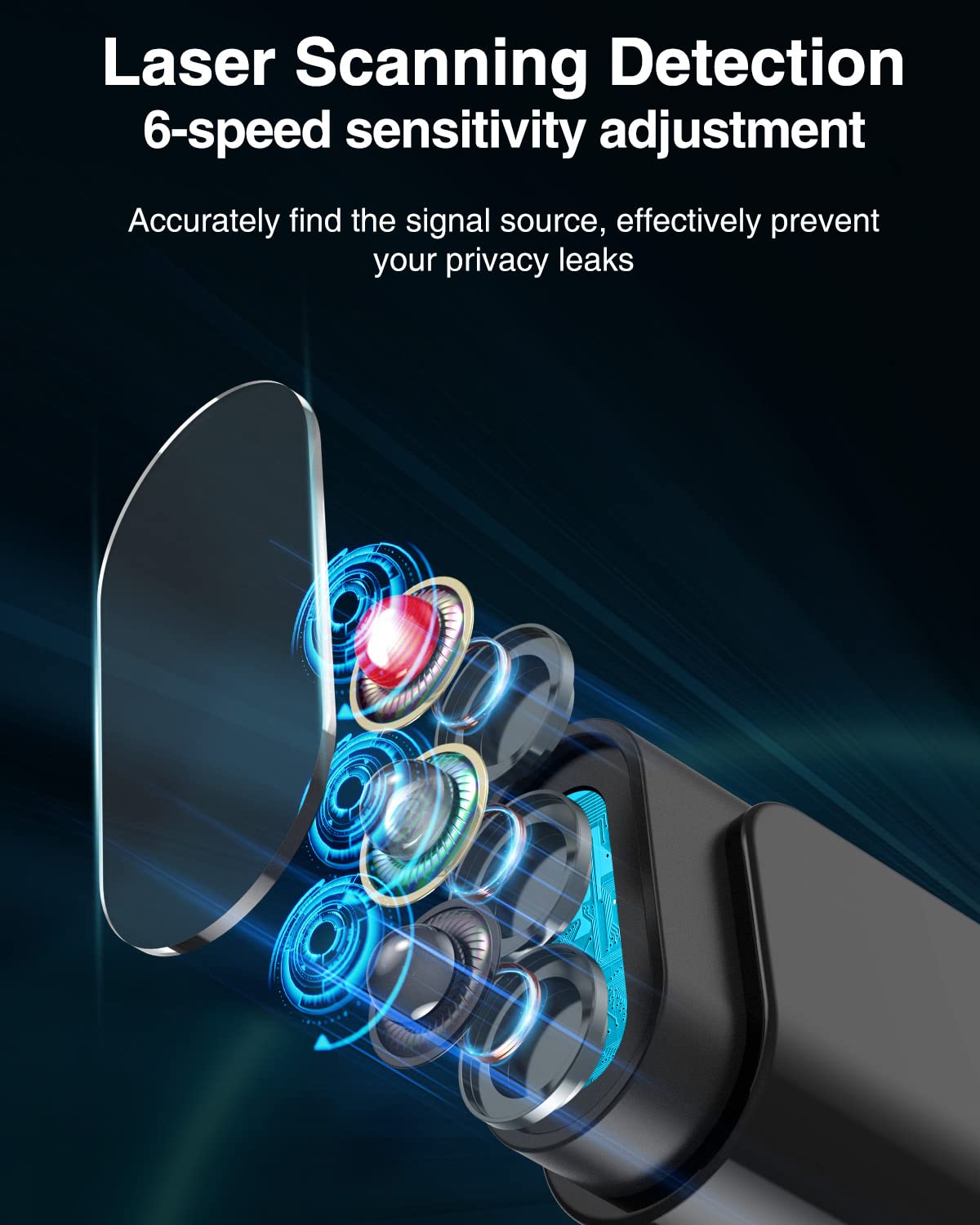 - Lật tẩy âm mưu đen tối: Phát hiện camera quay lén, máy ghi âm tinh vi, dù được giấu kín đến đâu, với khả năng quét dải tần rộng từ 50MHz đến 6GHz.