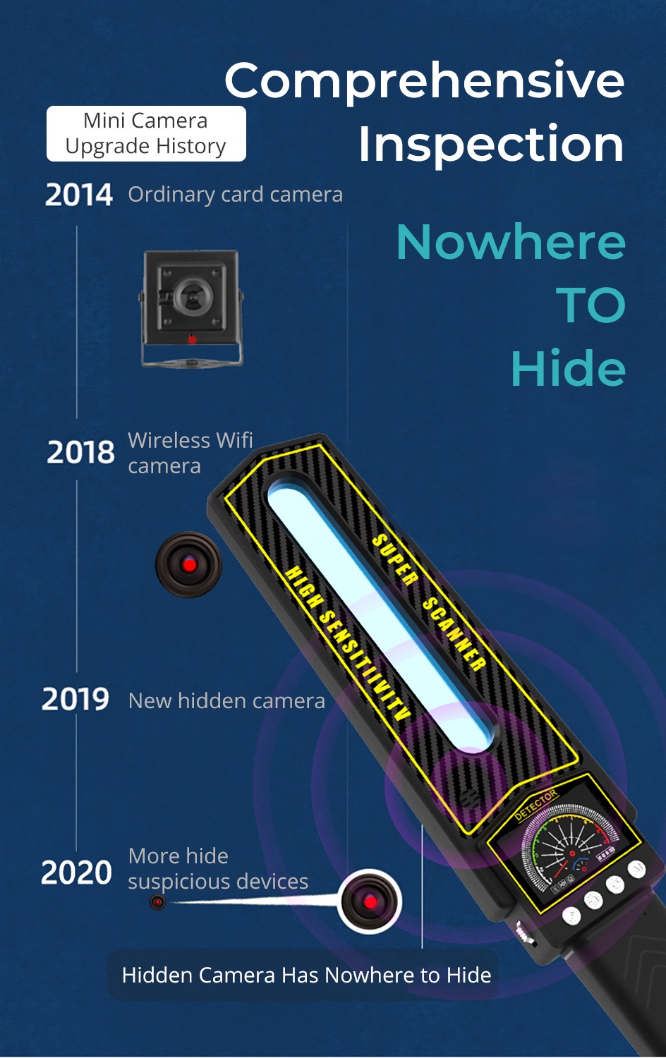 - Lật tẩy âm mưu đen tối: Phát hiện camera quay lén, máy ghi âm tinh vi, dù được giấu kín đến đâu, với khả năng quét dải tần rộng từ 1MHz đến 8000MHz.