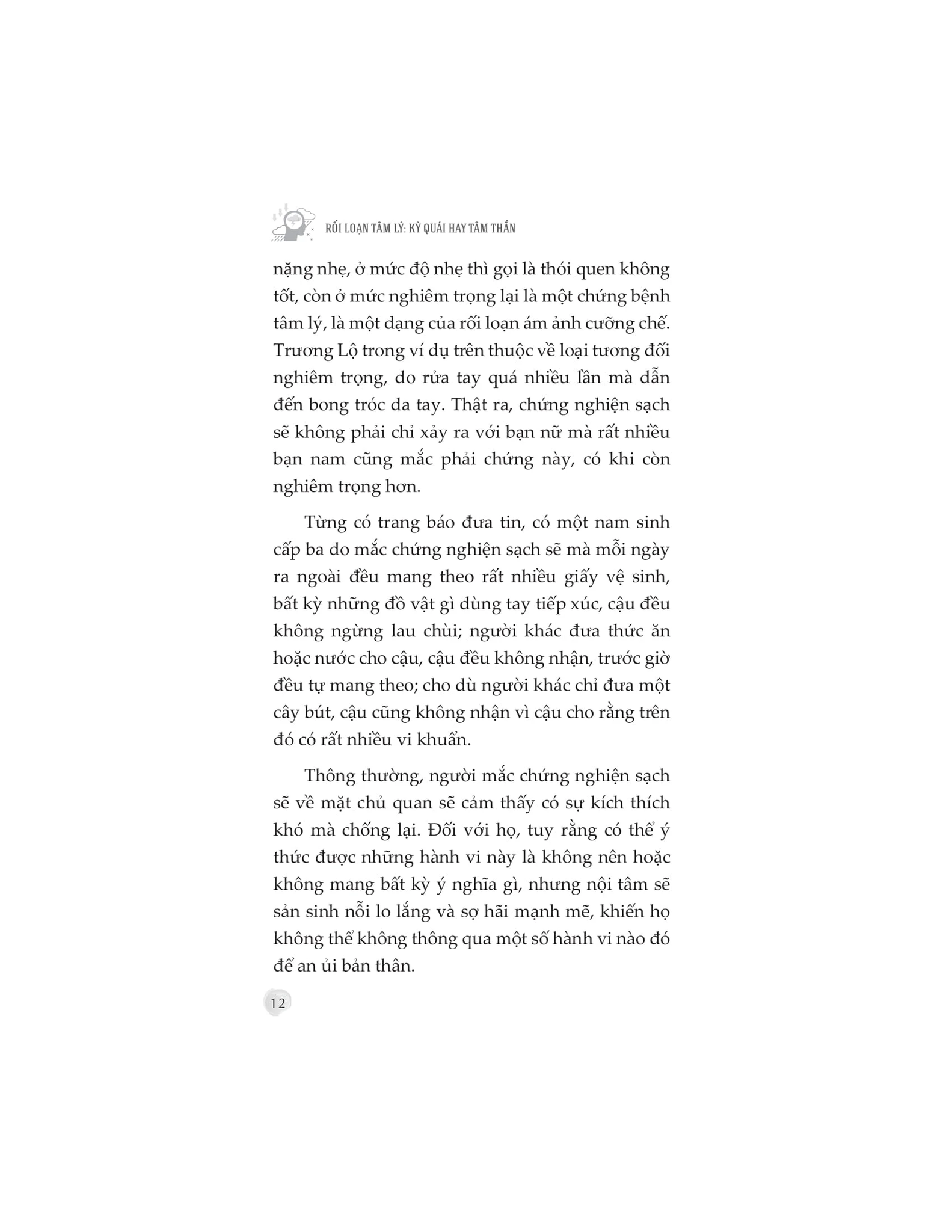 “Rối loạn tâm lý: Kỳ quái hay tâm thần” tập hợp những câu chuyện về tâm lý lập dị và hành vi kỳ lạ dưới góc độ tâm lý học. Cuốn sách tổng hợp những trường hợp có thật và điển hình, bao gồm: trầm cảm, rối loạn lưỡng cực, hoang tưởng, lo âu, chuyển giới, khổ d.âm, cuồng tín, hoang tưởng, chống đối xã hội, nghiện internet, nghiện rượu, nghiện thuốc l.á, nghiện chứng khoán...