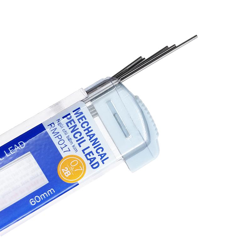 Độ cứng 2B kích thước 0.7mm, thay thế được cho hầu hết các loại chì bấm thông dụng hiện nay. – Sản phẩm được sản xuất trên dây chuyền công nghệ tiên tiến. – Sử