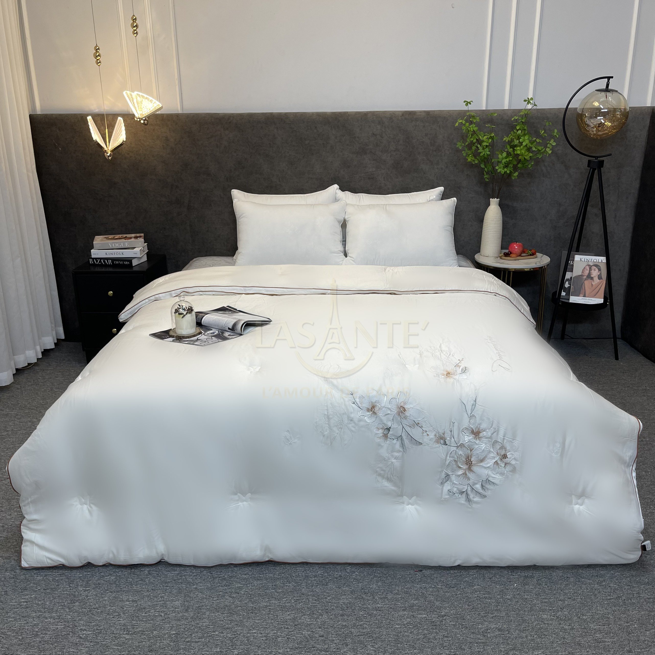 Màu sắc trang nhã , phù hợp với mọi phòng ngủ Chất liệu vải tencel : Vải mềm , mịn , mát , thấm hút mồ hôi tốt chăn bốn mùa kích thước 200*220 rộng