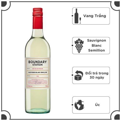 Rượu Vang Trắng BOUNDARY STATION Sauvignon Blanc Semillon Hương thơm tươi mát của trái cây nhiệt đới Một loại rượu nhẹ và sảng khoái thể hiện các đặc điểm trái cây nhiệt đới thanh lịch