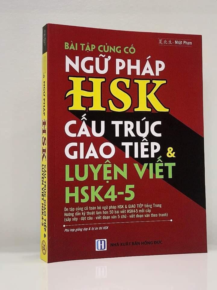 - Bài Tập Củng Cố Ngữ Pháp HSK – Cấu Trúc Giao Tiếp & Luyện Viết HSK 4-5 Kèm Đáp Án Tác giả: Nhật Phạm Số trang: 490 Ngày xuất bản: 01/11/2017 Nhà Xuất Bản: Dân Trí Giá bìa: 300,000 VNĐ MUỐN GIỎI NGỮ PHÁP CẤU TRÚC TIẾNG TRUNGMUỐN VIẾT HSK4-5 LÊN TRÌNH️Đừng bỏ qua cuốn này! ️ Bài tập ngữ pháp HSK1-6 ( Full ngữ pháp tiếng Trung) Luyện viết HSK4-5 với các đề thật HSK, sách có đáp án chi tiết, hướng dẫn làm bài! ️Lưu ý: Sách phù hợp cho các đối tượng từ cơ bản đến nâng cao! Đây là cuốn sách với tuyển tập các bài tập luyện dịch từ cơ bản đến nâng cao, phù hợp với các đối tượng bắt đầu học tiếng Trung với phần 1 "BÀI TẬP DỊCH TRUNG VIỆT-VIỆT TRUNG CỦNG CỐ CẤU TRÚC CỐ ĐỊNH & NGỮ PHÁP (Dựa theo ngữ pháp tiếng Hán Sơ trung cấp hiện đại", còn các đối tượng đã học đến HSK5-6 vẫn hoàn toàn có thể sử dụng để nâng cao kỹ năng biên dịch cũng như phục vụ cho phiên dịch với phần 2 "BÀI TẬP DỊCH NÂNG CAO KỸ NĂNG DỊCH VÀ TĂNG CƯỜNG CẤU TRÚC DỊCH NÂNG CAO (Có cung cấp cấu trúc và sử dụng). Cuốn sách được biên soạn chi tiết tỉ mỉ với các phần bài tập kèm phần đáp án có hỗ trợ từ vựng, cấu trúc hiếm gặp, cấu trúc nâng cao. Phần 1 là các câu tiếng Việt hoặc tiếng Trung thường sử dụng được biên soạn dựa theo hệ thống ngữ pháp tiếng Hán hiện đại ở cả mảng giao tiếp và hàn lâm học thuật giúp các bạn cải thiện, hoàn thiện kiến thức cũng như thực hành ứng dụng các mảng ngữ pháp, cấu trúc, đồng thời củng cố thêm vốn từ vựng tiếng Trung ứng dụng. Phần 2 là các đoạn văn ngắn với dung lượng 100-300 từ trong các lĩnh vực của đời sống như giao tiếp thương mại, kinh tế, giáo dục, du lịch, địa lý, đất nước con người Việt Nam, Phần này giúp các bạn rèn luyện thêm kỹ năng dịch, tích lũy các cấu trúc tiếng Trung nâng cao cũng như lượng từ vựng vô cùng phong phú ở nhiều lĩnh vực.Để có được cuốn sách giá trị này, NP BOOKS xin chân thành cảm ơn các biên tập viên Linh Chi, Thùy Linh, Hải Yến đã hỗ trợ chủ biên Nhật Phạm, đặc biệt cảm ơn cô giáo Khâu Phượng Nghi (Giáo viên Trung Quốc) đã dành nhiều thời gian để kiểm duyệt nội dung, giúp cho cuốn sách có được tính bản ngữ tối đa đối với ngôn ngữ Trung Quốc.Chân thành cảm ơn độc giả đã, đang luôn yêu quý và ủng hộ những sản phẩm của NP BOOKS, hy vọng rằng độc giả sẽ có những ý kiến đóng góp để cuốn sách được hoàn thiện hơn nữa trong những lần tái bản sau.