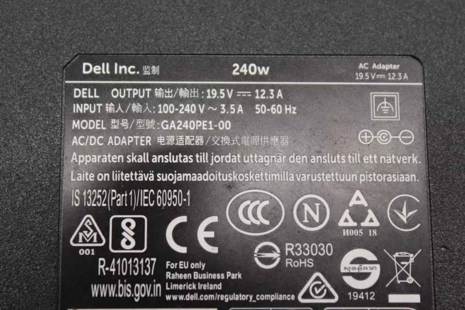 THÔNG SỐ KỸ THUẬT Tên sạc: Sạc dành cho Laptop DELL PRECISION 17 7710 7720 - Hàng Nhập khẩu Công Suất: 240W Chuẩn chân cắm: 7.4 mm×5.0 mm Điện áp ra: 19.5V 12.3A - Điện