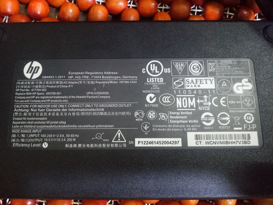 Tên sạc: Sạc dành cho Laptop HP Omen 15-dc0077TX Công suất: 200W Chuẩn chân cắm: (4.5 mm * 3.0 mm) Chân Kim Loại nhỏ(mới) Điện áp vào(input): 100V - 240V Điện áp ra(output) : 19.5V-10.3A