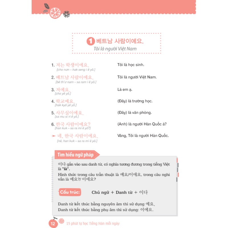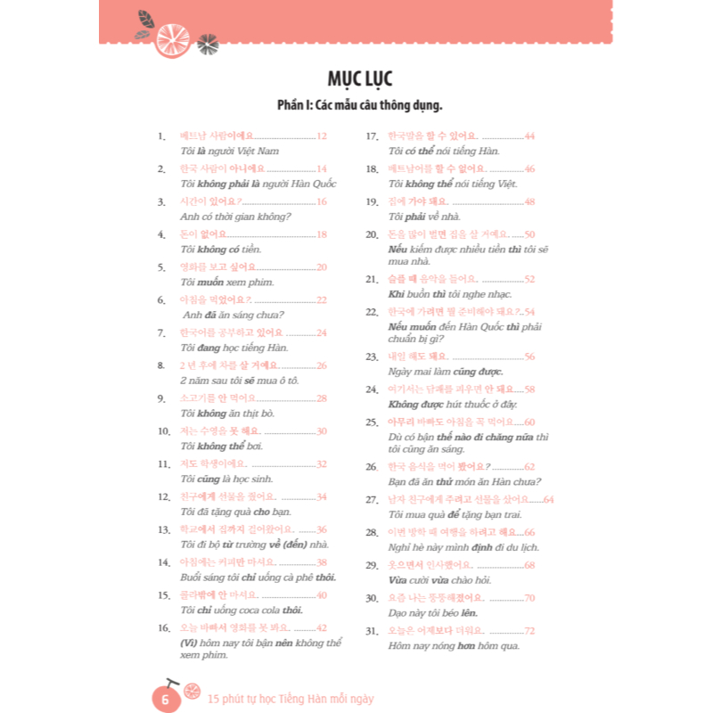 Chỉ cần 15 phút là bạn hoàn toàn có thể ôn tập lại kiến thức bài cũ và tiếp thu thêm được một lượng kiến thức của bài mới. Dù bận rộn đến mấy chỉ cần kiên trì chắc chắn bạn sẽ đạt được mục tiêu bản thân đề ra. Các bạn muốn học tiếng Hàn một cách thật đơn giản và nhanh chóng, đừng đắn đo mà hãy sở hữu cuốn sách tuyệt vời này.