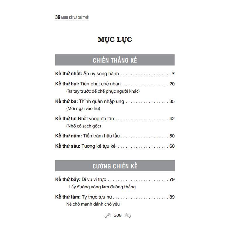 Trong cuộc sống, không phải chỉ cần sức mạnh là có thể vượt qua được mọi thử thách. Cuốn sách “36 Mưu Kế Và Xử Thế” sẽ chứng minh cho người đọc thấy rằng chiến trường, thương trường, thắng bại đều do khéo dùng mưu chứ không phải dùng sức. Mặc dù mục đích ban đầu của tác phẩm nổi tiếng này là để phục vụ quân sự nhưng cho đến ngày nay nó đa tạo ra sức ảnh hưởng bao trùm mọi lĩnh vực và có ý nghĩa đối với mọi thời đại.