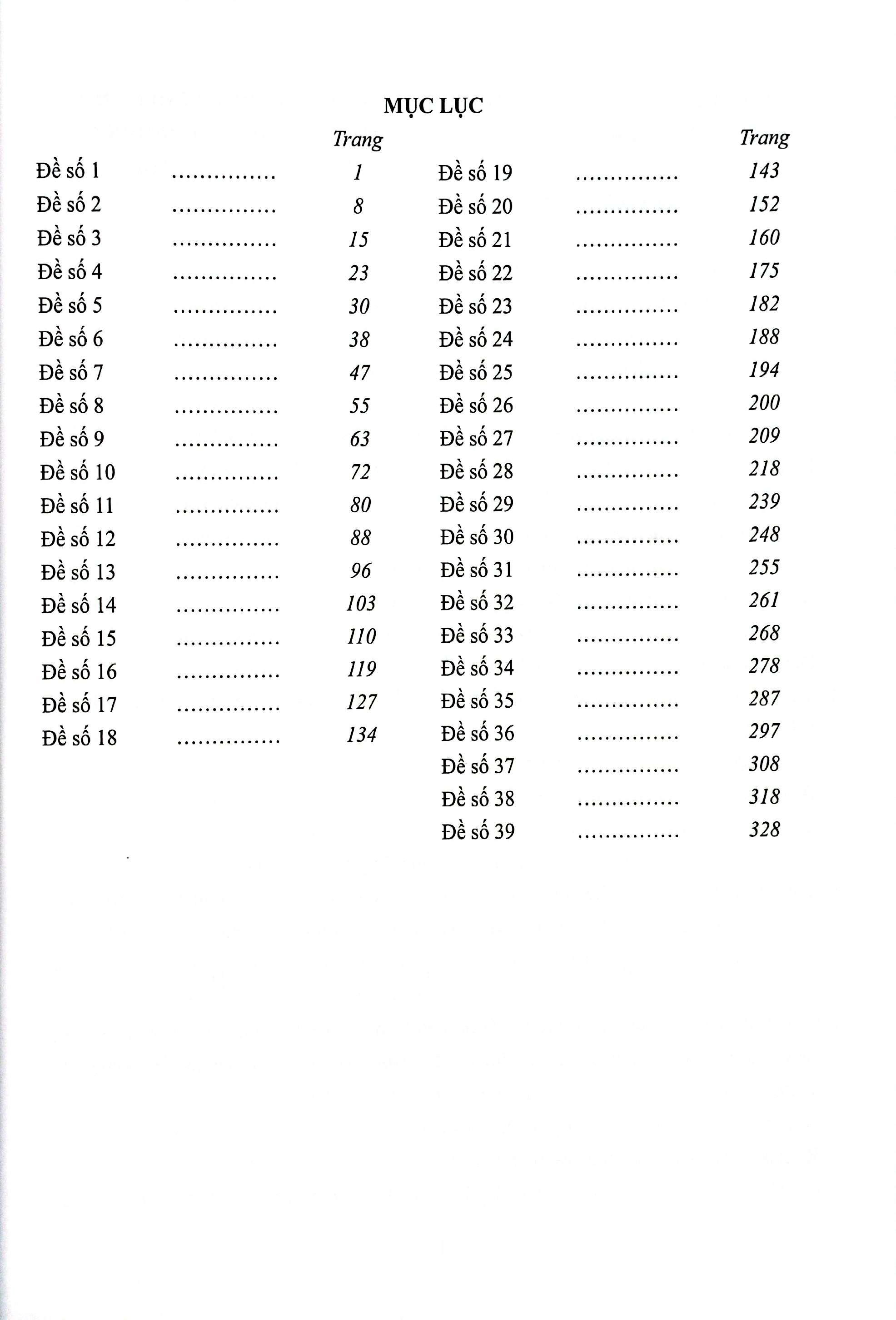 Nội dung cuốn sách bao gồm 39 đề thi được tuyển chọn và xây dựng công phu, bám sát chương trình giáo dục hiện hành, giúp học sinh không chỉ củng cố kiến thức cơ bản mà còn rèn luyện khả năng tư duy, phân tích và giải quyết vấn đề. Bên cạnh đó, các đề thi được thiết kế đa dạng về dạng bài, phong phú về nội dung, từ lý thuyết đến thực hành, góp phần phát triển năng lực sáng tạo của học sinh.