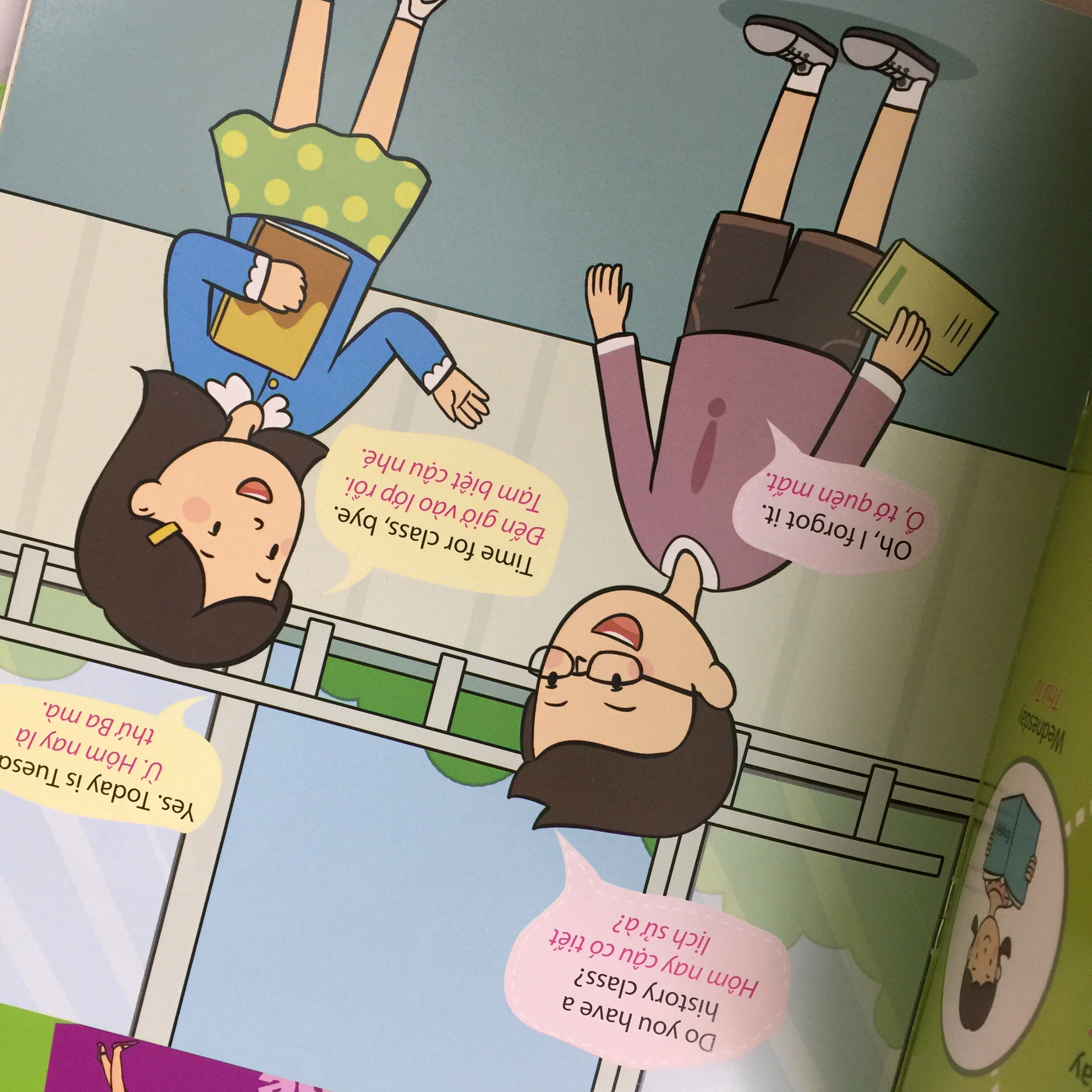 Qua từng cuốn sách con có thể giao tiếp cơ bản về những hoạt động trong ngày của con bằng tiếng anh với bố mẹ.