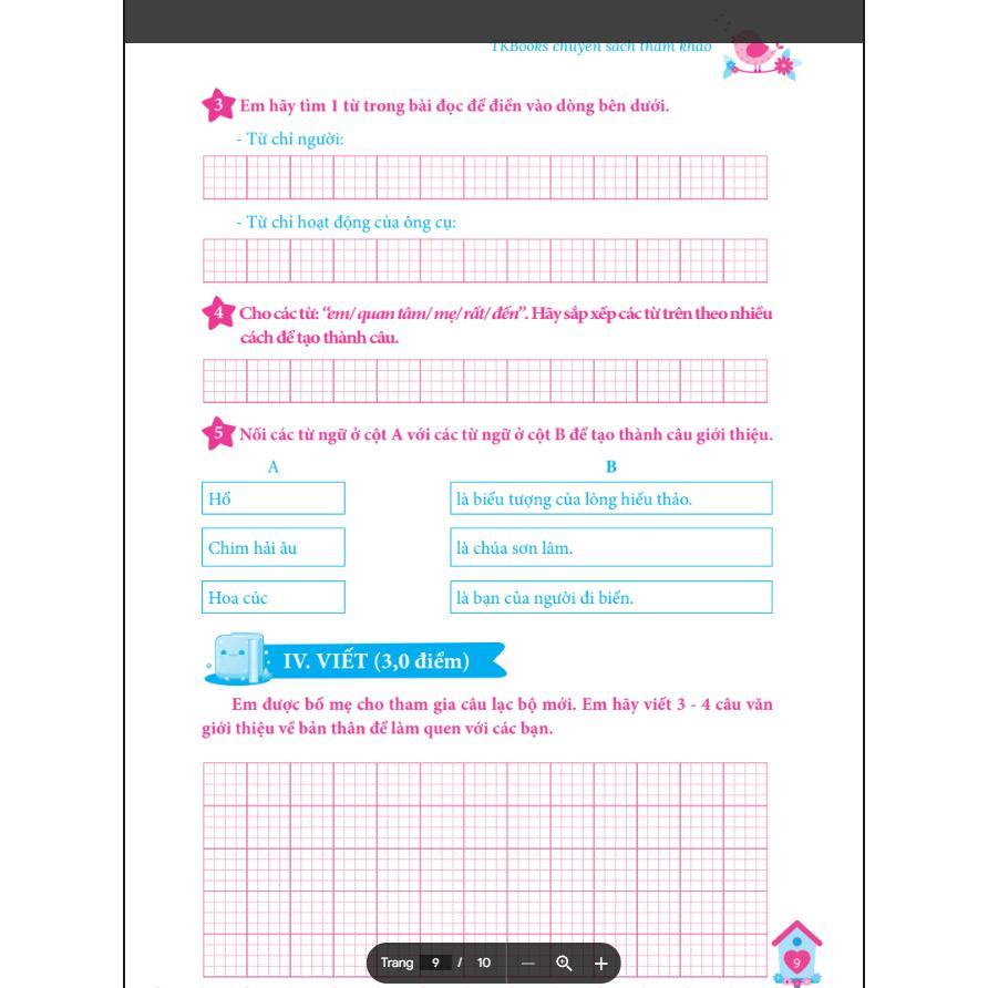 -Kỹ năng Nghe – Nói – Đọc – Viết: Mỗi đề đều bao gồm các phần luyện tập kỹ năng nghe, nói, đọc, viết, giúp các em phát triển toàn diện các kỹ năng tiếng Anh.