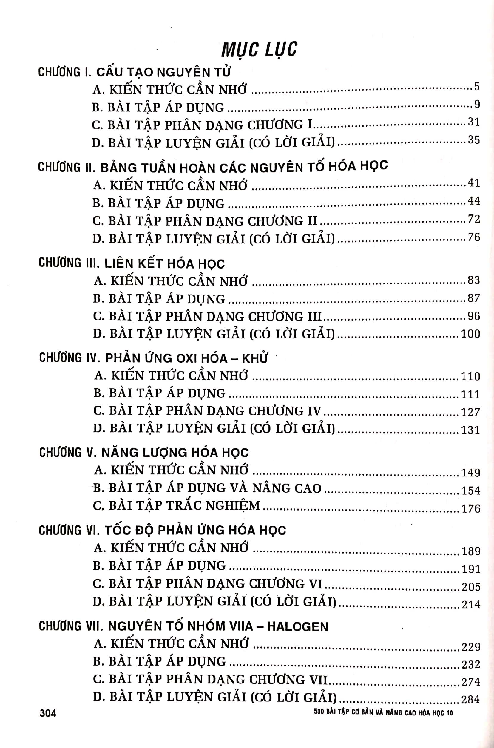 500 Bài Tập Cơ Bản Và Nâng Cao Hóa Học 10 (Theo Chương Trình Giáo Dục Phổ Thông Mới - Dùng Chung Cho Các Bộ SGK Hiện Hành)