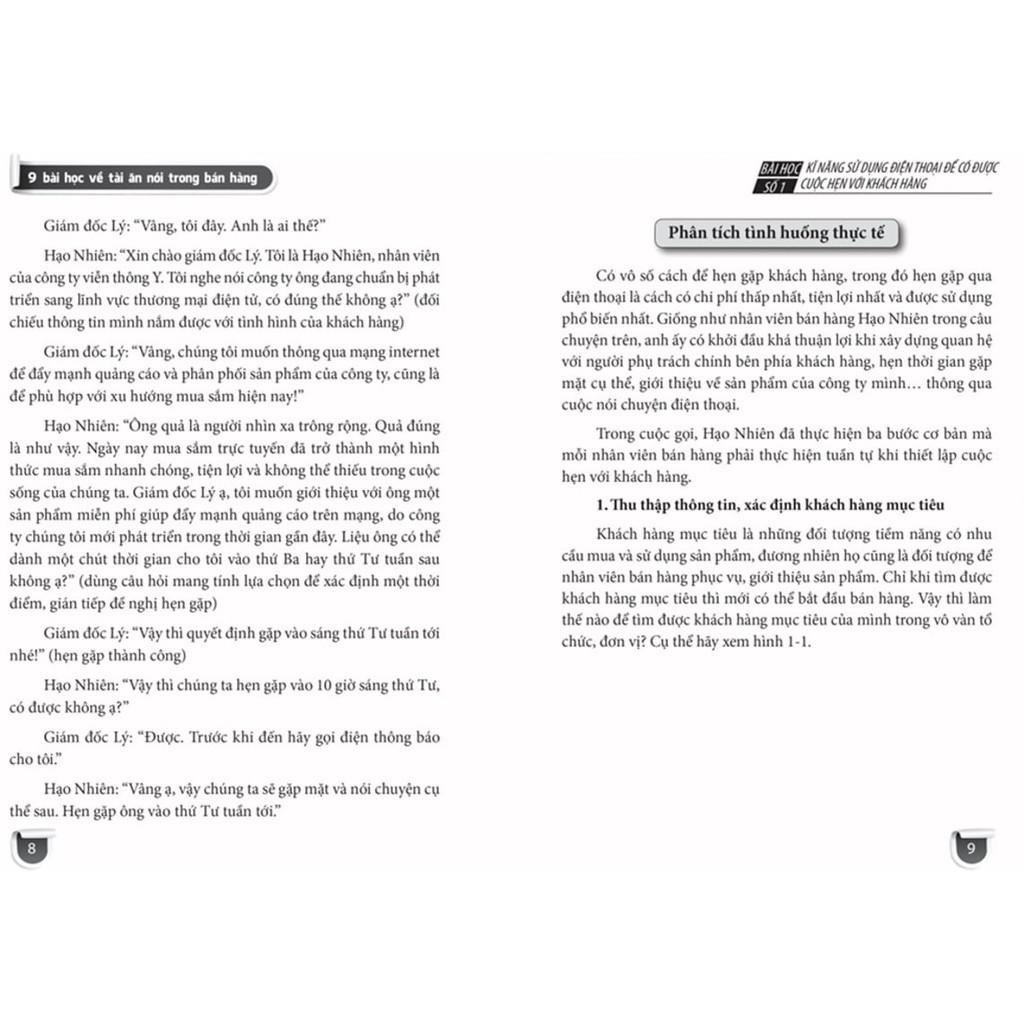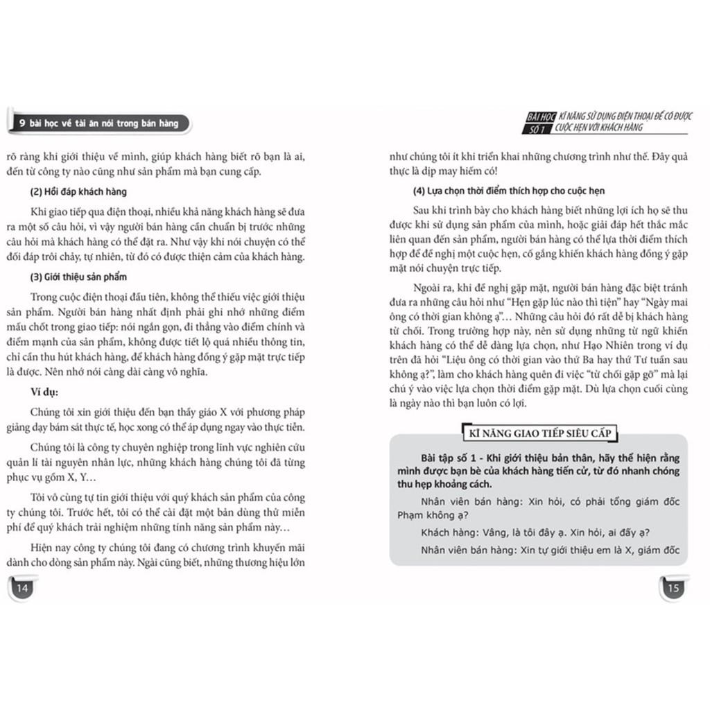 Để giành được lợi thế trong giới bán hàng thì phải giỏi ăn nói, thế nhưng nếu bạn không giỏi ăn nói thì phải làm sao? Cuốn cẩm nang “9 bài học về tài ăn nói trong bán hàng” gói gọn tất tần tật những kỹ năng mà bạn có thể học được ‘ngay lập tức’ nhờ có những phân tích chi tiết; tình huống gần gũi với thực tế bán hàng thông qua 47 kỹ năng được chia thành 9 bài học vô cùng dễ hiểu.