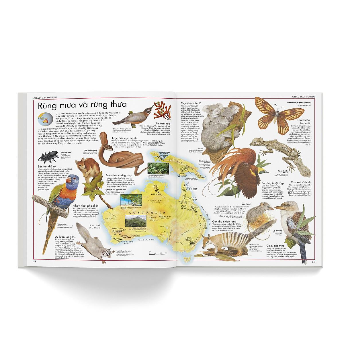 - Phát hành: /2023 NỘI DUNG SÁCH: Atlas động vật - Bách khoa bằng hình về các loài động vật hoang dã trên thế giới mang đến một góc nhìn đẹp đẽ và đắm say về thế giới tự nhiên, đầy ắp các hình ảnh minh họa xuất sắc, những bản đồ chi tiết và nguồn thông tin dồi dào lôi cuốn. Với cuốn sách này, các bạn đọc nhỏ được thỏa sức khám phá các châu lục và quốc gia trên thế giới, từ vùng Bắc Cực lạnh giá đến các hoang mạc phía tây, sang dãy Andes, rừng mưa hay vùng Siberia… Mỗi vùng đất lại có điều kiện địa lý, khí hậu khác nhau; cùng với đó là các loài thú, chim, bò sát, cá và côn trùng đặc trưng ở từng khu vực… Các em hãy cùng tìm hiểu các loài sinh vật khác nhau trên thế giới sống ở đâu, môi trường sống của các loài này như thế nào, chúng tồn tại trong khí hậu rất nóng hay rất lạnh ra sao… Rất nhiều điều thú vị đang chờ em khám phá trong cuốn sách này nhé!