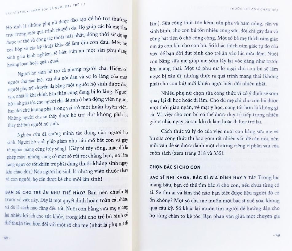 Tất cả những lời khuyên trong bộ sách đã được bác sĩ Spock thử nghiệm theo thời gian, từ các thực hành y tế mới nhất đến những tiến bộ trong chăm sóc trẻ em, cùng với bảng chú giải thuật ngữ y tế hoàn toàn mới. Bộ sách thiết yếu và kinh điển này sẽ giúp tất cả các bậc cha mẹ đối mặt với nhiều thử thách và trách nhiệm của m.ình với sự tự tin và niềm vui mới. Như bác sĩ Spock đã luôn nói: “Hãy tin tưởng vào bản thân. Bạn biết nhiều hơn những gì bạn nghĩ.”