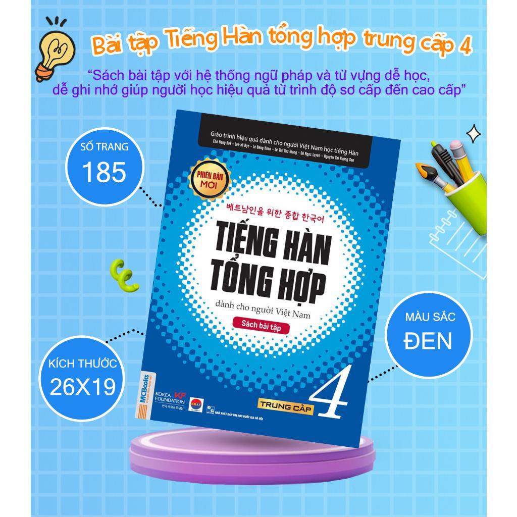 Sách - Bài tập Tiếng Hàn tổng hợp trung cấp 4 - Luyện càng nhiều nhớ càng lâu - McBooks
