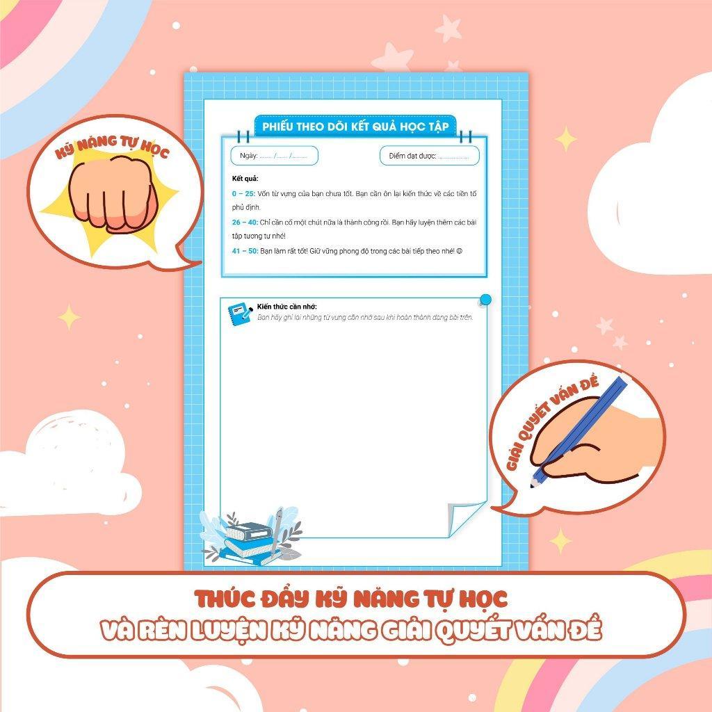 Cuối mỗi dạng bài học sinh sẽ được tự đánh giá lại kết quả của mình, ghi lại kết quả của bài học đó, và note lại kiến thức cần nhớ để học lâu, nhớ sâu hơn.