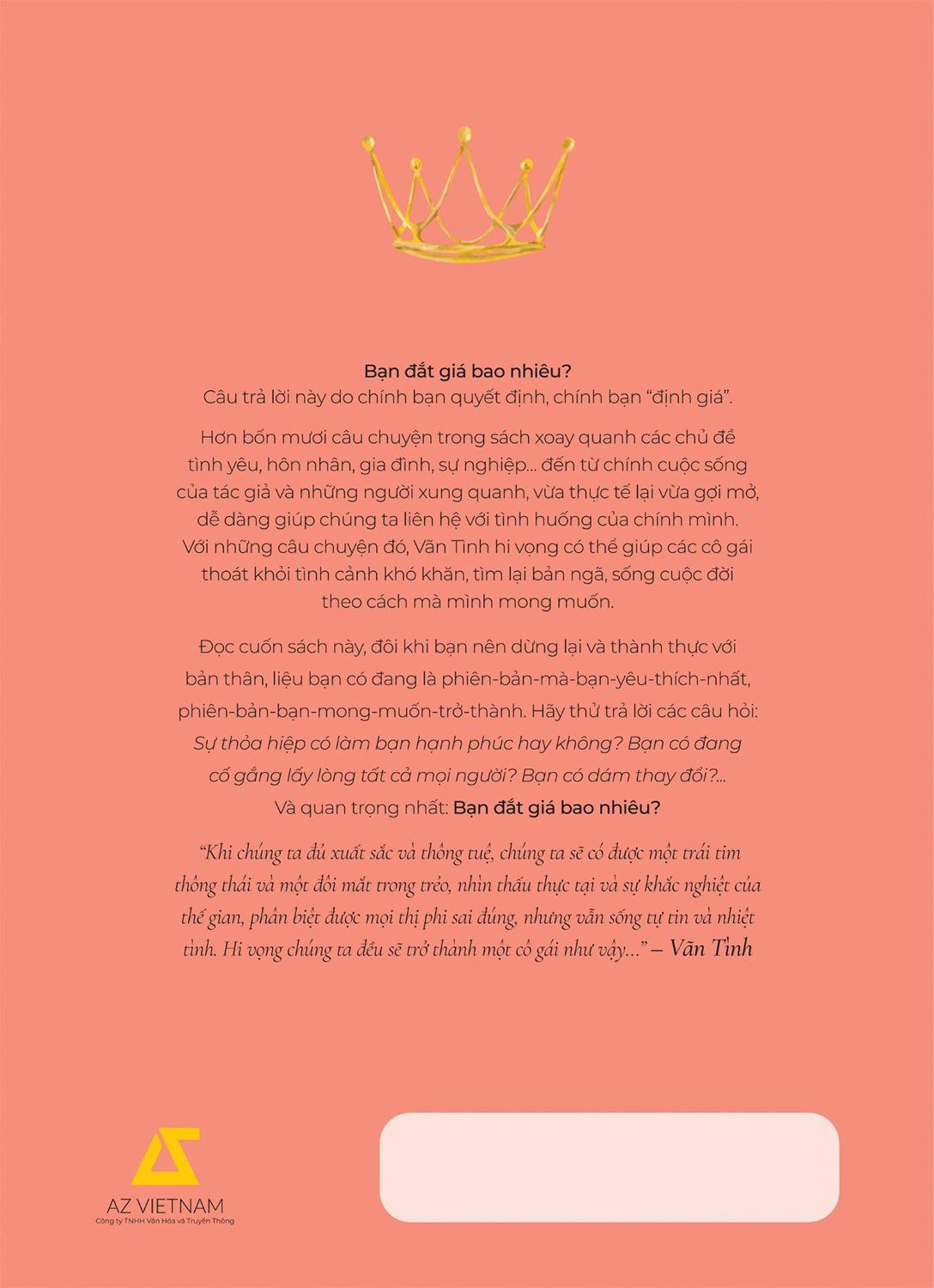 Đọc cuốn sách này, đôi khi bạn nên dừng lại và thành thực với bản thân, liệu bạn có đang là phiên-bản-mà-bạn-yêu-thích-nhất, phiên-bản-bạn-mong-muốn-trở-thành. Hãy thử trả lời các câu hỏi: Sự thỏa hiệp có làm bạn hạnh phúc hay không? Bạn có đang cố gắng lấy lòng tất cả mọi người? Bạn có dám thay đổi?... Và quan trọng nhất: Bạn đắt giá bao nhiêu?