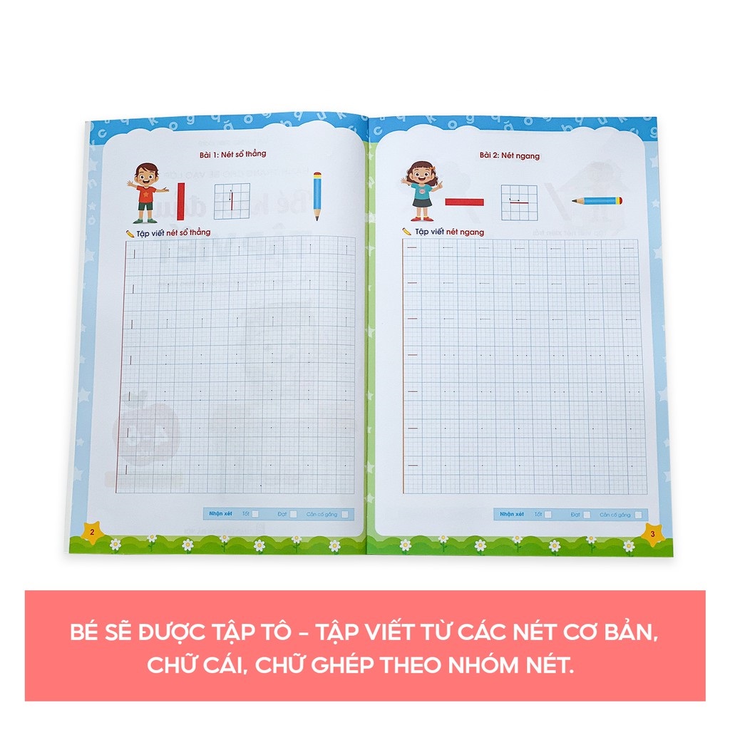 Bé Chuẩn Bị Vào Lớp 1 - Chữ Cái, Chữ Ghép, Nét Cơ Bản Và Chữ Số - Bộ 2 Cuốn là vở luyện viết dành cho trẻ mầm non đang chuẩn bị vào lớp