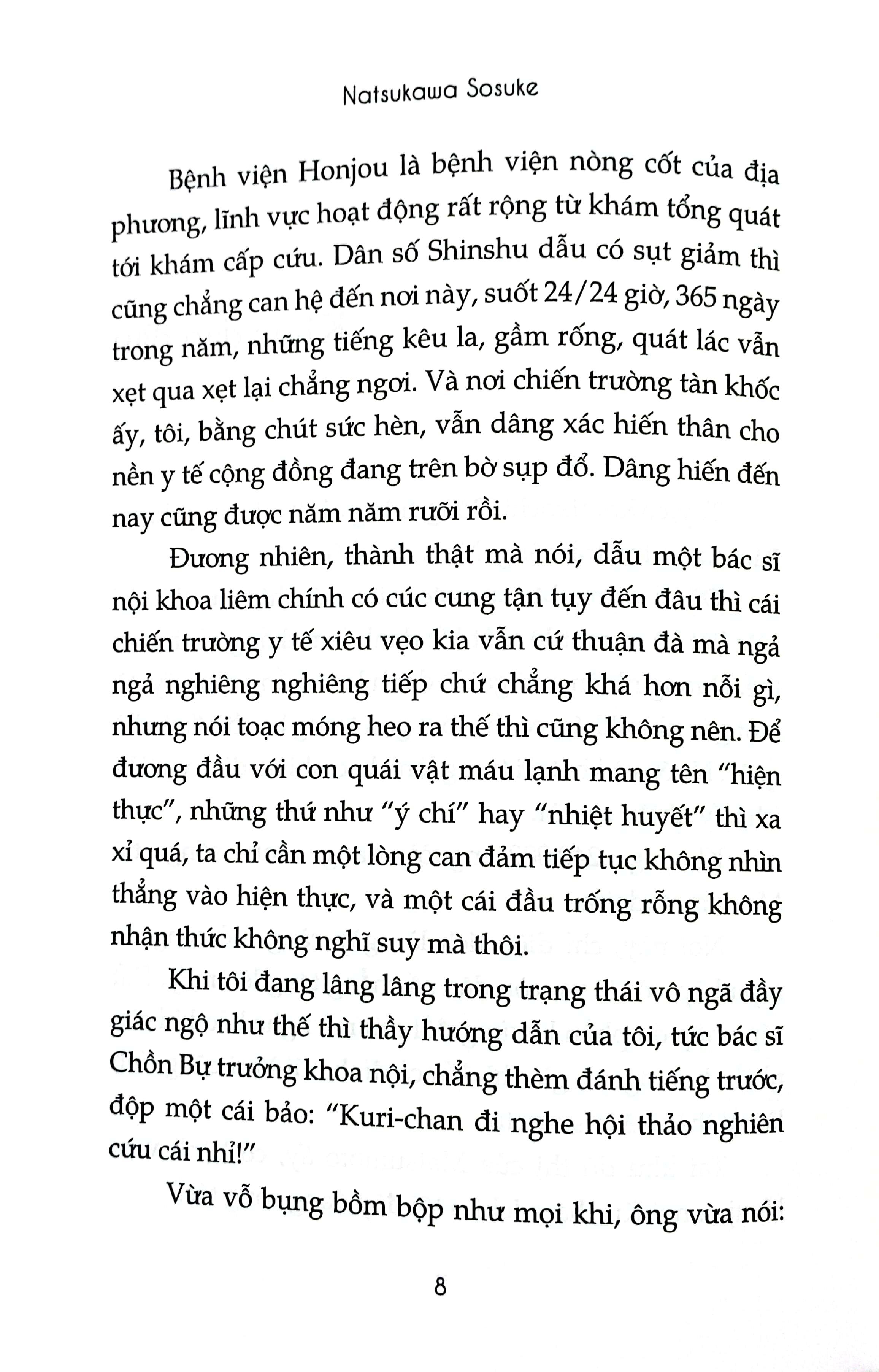 Mùa nối gót mùa đi qua, chỉ có bệnh viện Honjou là vẫn như một chiến trường khốc liệt: xe cấp cứu, bệnh nhân ra vào tấp nập, các bác sĩ, y tá làm việc không ngơi tay. Bị cuốn vào vòng xoáy khám chữa bệnh tưởng chừng không có lối ra, một người luôn ôm mộng theo đuổi lý tưởng như bác sĩ Kurihara Ichito cũng quên bẵng mất bản thân đang hướng tới điều gì. Chẳng vậy mà, chỉ một nữ bác sĩ tài giỏi với phong cách làm nghề đanh thép đã khiến triết lý nhân sinh nơi anh lung lay toàn tập. Rồi khi một sự cố nghiêm trọng xảy đến, mọi lý lẽ trong anh sụp đổ tan tành. Rốt cuộc, anh phải chọn con đường nào để tiến bước đây?