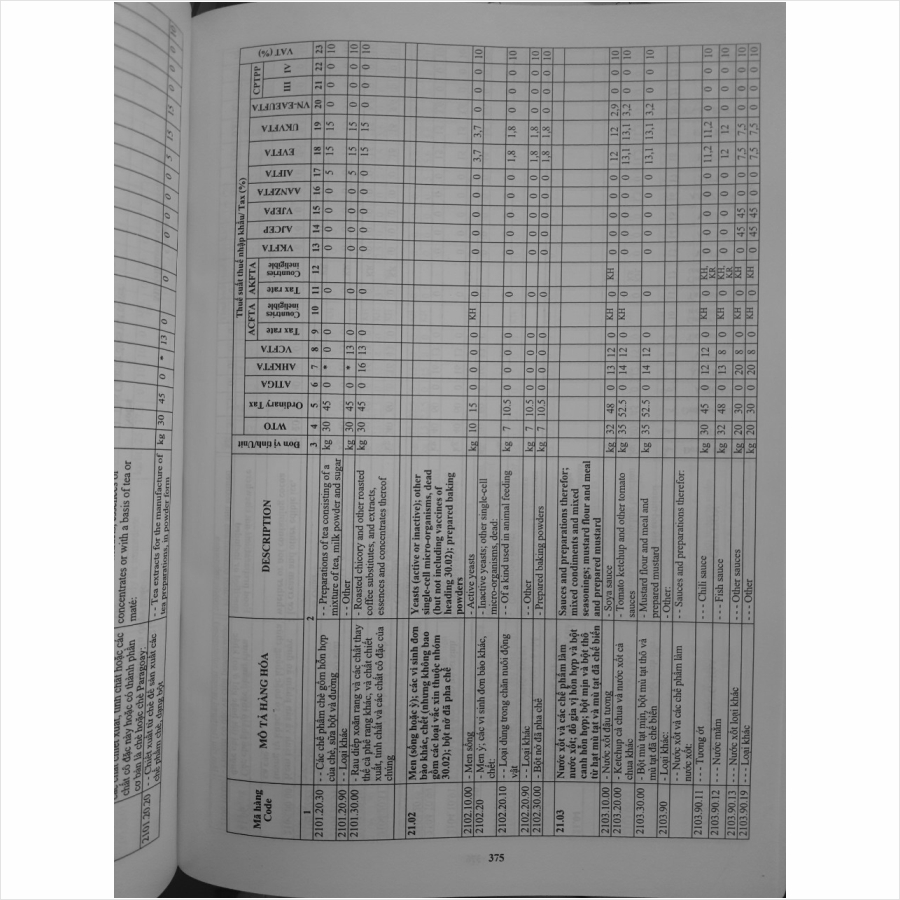 THUẾ - TAX 2021 (song ngữ Anh việt) BIỂU THUẾ XUẤT KHẨU – NHẬP KHẨU VÀ THUẾ GTGT HÀNG NHẬP KHẨU 24 cột bao gồm: mã số, Danh mục biểu thuế hài hòa ASEAN PHIÊN