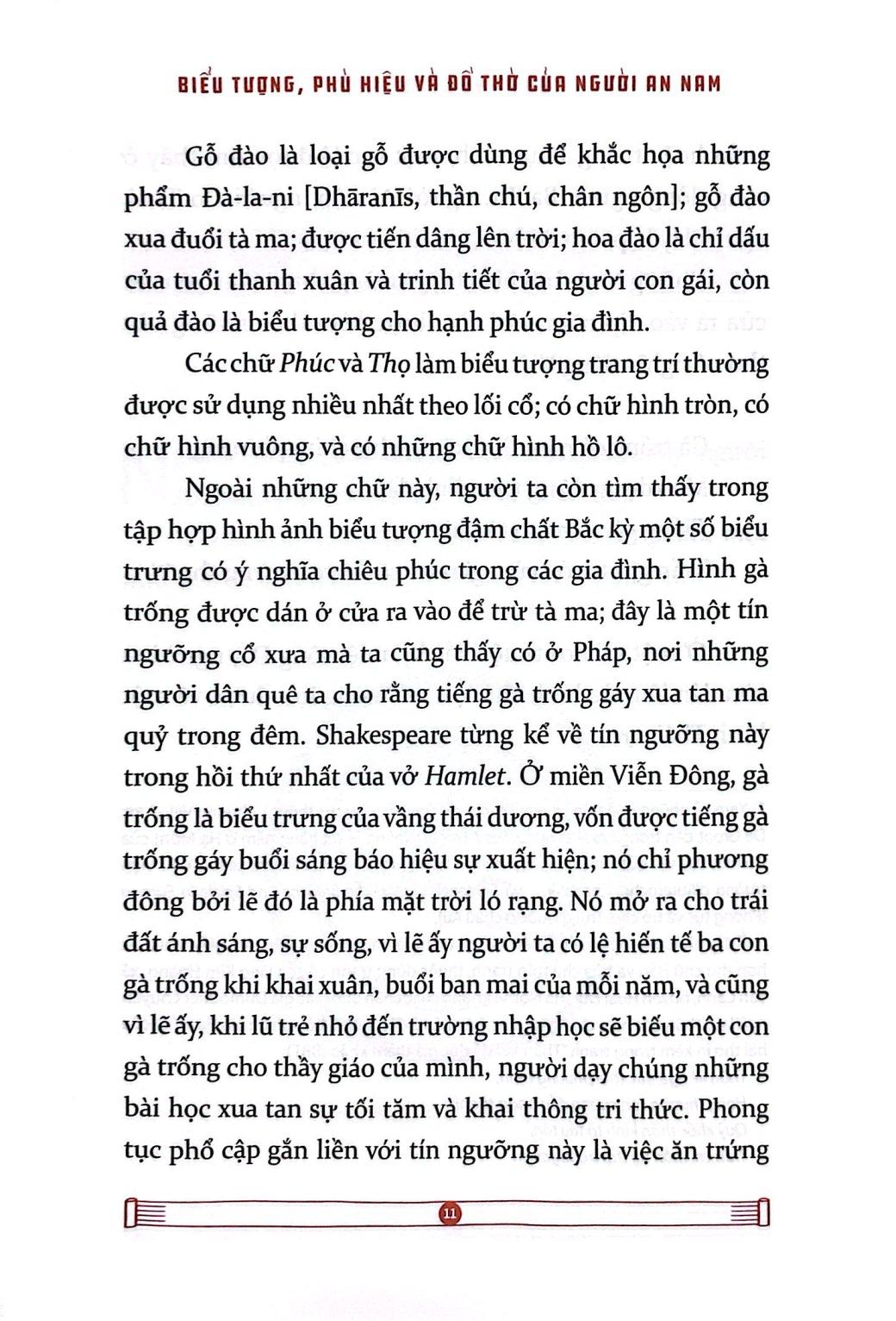 Thờ cúng tổ tiên là tín ngưỡng truyền thống của người Việt Nam, được người dân mọi tầng lớp hết sức trọng thị. Trong quan niệm của người Việt, mỗi đồ thờ được đặt trên ban thờ đều mang ý nghĩa tâm linh quan trọng, bởi đó là thứ kết nối giữa dương gian và âm thế, thứ con người gửi gắm những kỳ vọng và mong ước tốt đẹp. Và để hiểu hơn về ý nghĩa, vai trò của mỗi biểu tượng, phù hiệu và món đồ thờ được đặt trên ban thờ của người Việt, cuốn sách BIỂU TƯỢNG, PHÙ HIỆU VÀ ĐỒ THỜ CỦA NGƯỜI AN NAM, một trong số nhiều nghiên cứu của Gustave Dumoutier về văn hóa dân gian Bắc kỳ, sẽ là nguồn tư liệu hữu ích.