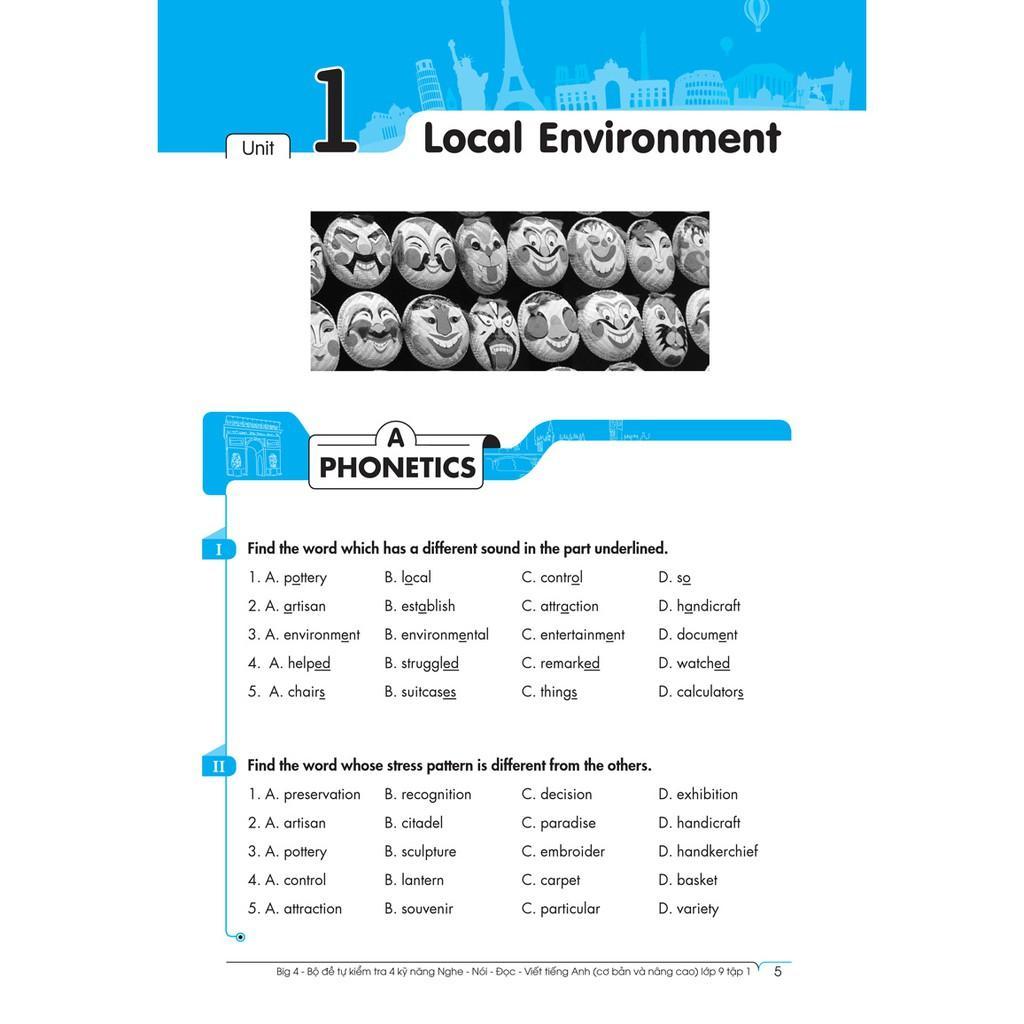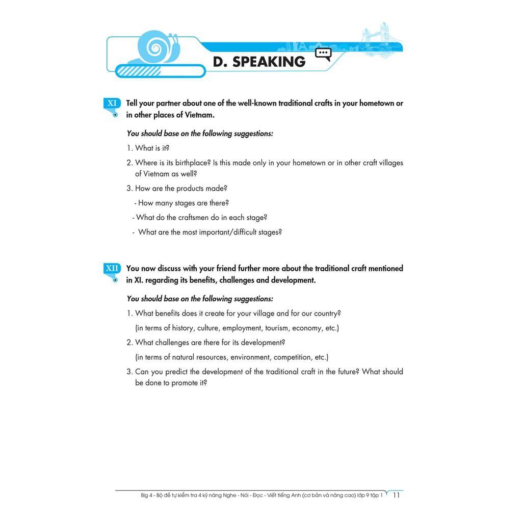 Big 4 Bộ Đề Tự Kiểm Tra 4 Kỹ Năng Nghe – Nói – Đọc – Viết (Cơ Bản và Nâng Cao) Tiếng Anh Lớp 9 Tập 1 viết theo chuẩn khung chương trình mới của Bộ Giáo Dục và Đào Tạo giúp các em học sinh lớp 9 củng cố và phát triển toàn diện các kỹ năng: Nghe – Nói – Đọc – Viết Tiếng Anh.
