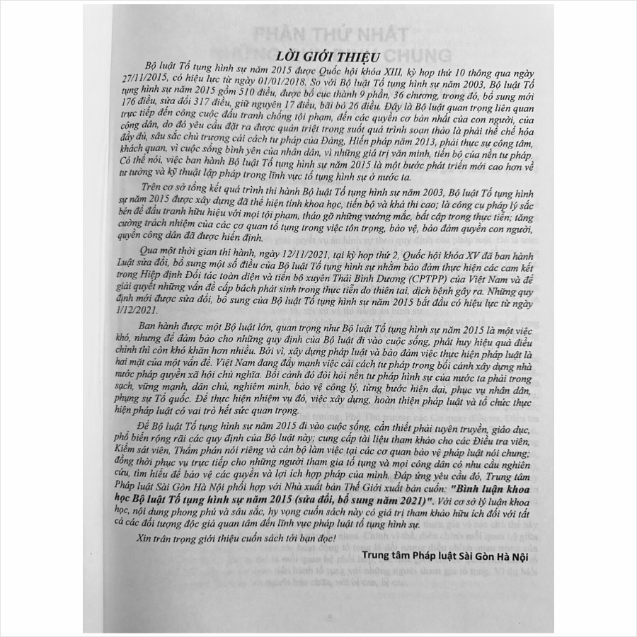 Bình Luận Khoa Học Bộ Luật Tố Tụng Hình Sự Năm 2015 (Tái Bản) Bộ luật tố tụng hình sự 2015 được Quốc hội thông qua ngày 27-11-2015, có hiệu lực từ ngày 1-1-2018. Việc
