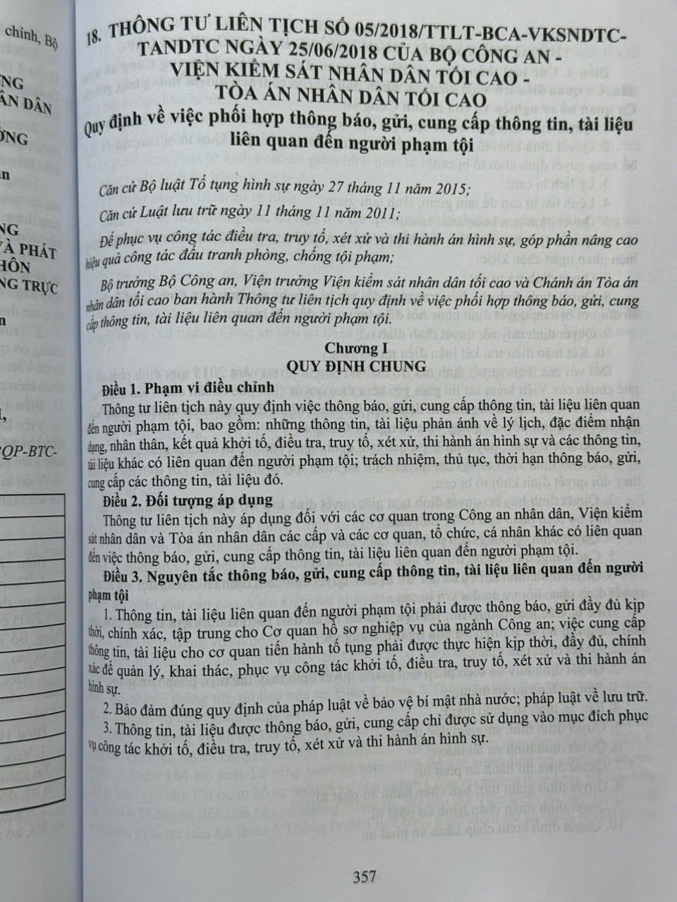 – Thông tư liên tịch 05/2025/TTLT-BCA-BQP-VKSNDTC-TANDTC ngày 01/7/2025 Quy định về phối hợp giữa các cơ quan tiến hành tố tụng trong điều tra, truy tố, xét xử vắng mặt bị can, bị cáo;