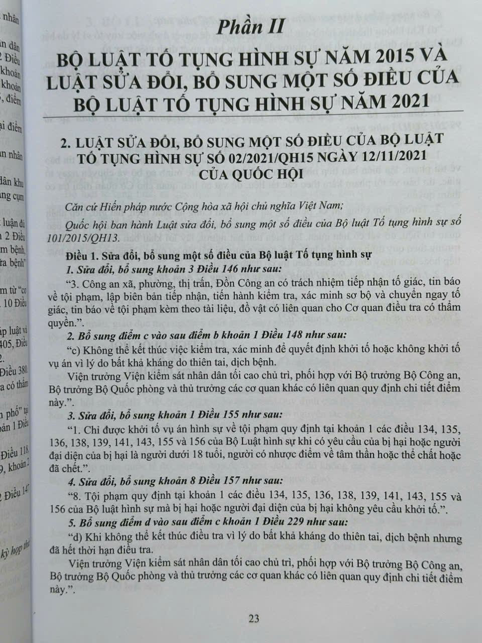 Phần thứ hai. Bộ luật Tố tụng hình sự năm 2015 và luật sửa đổi, bổ sung một số điều của BLTTHS năm 2021