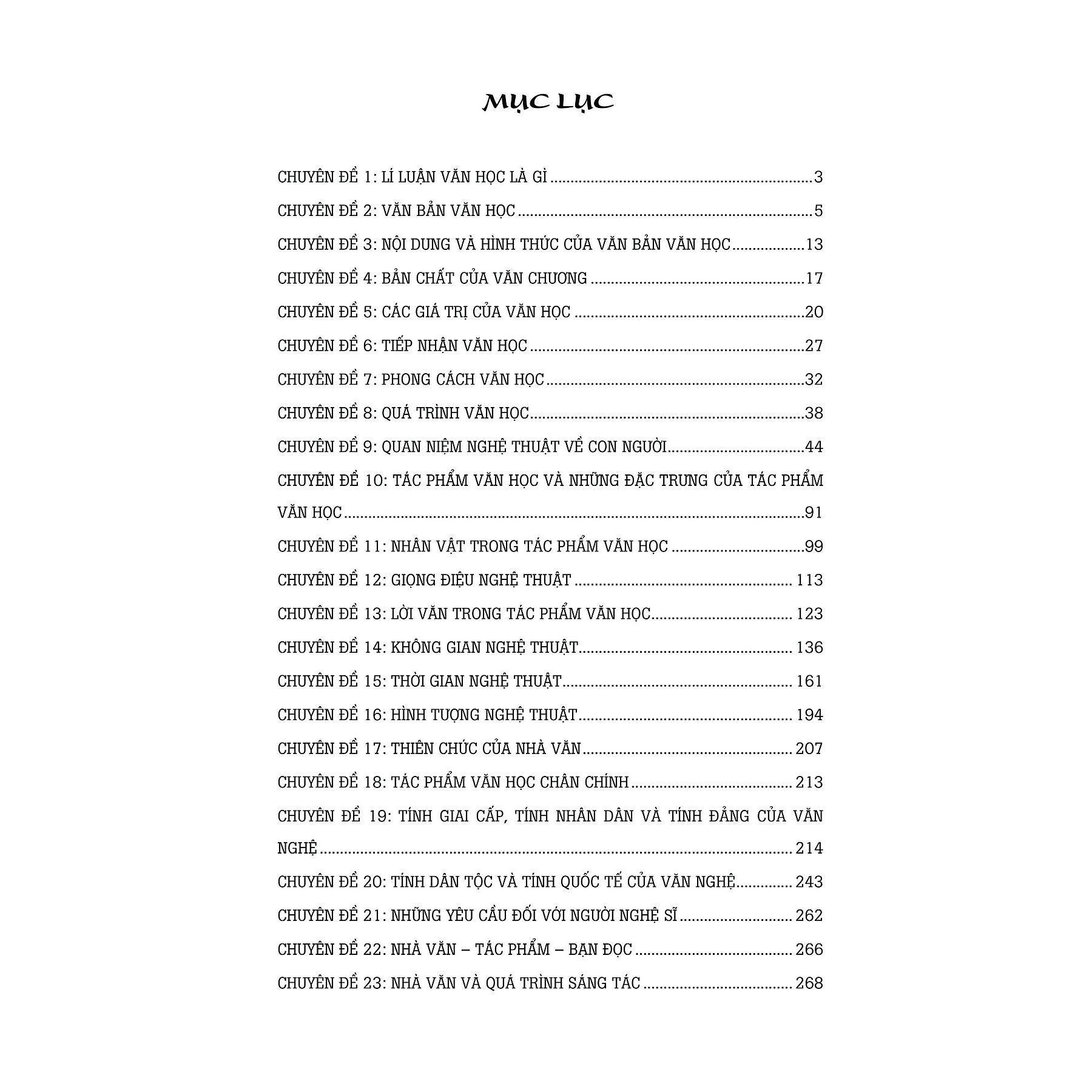 Đây là cuốn sách được nhóm biên soạn tập hợp những vấn đề cơ bản về lí luận văn học. Cuốn sách này được viết bởi nhiều giọng điệu, nhiều mức độ khai thác giá trị của văn chương để đáp ứng trình độ của đối tượng học sinh giỏi THCS & THPT. Sau mỗi bài học là câu hỏi và bài tập để học sinh tham khảo và vận dụng. Với nội dung khá phong phú, đa dạng như vậy thì đây là cách “Học khôn ngoan mà không gian nan”. Người biên soạn hi vọng đây sẽ là cuốn sách bổ ích đối với giáo viên và các em học sinh. Bể học là mênh mông vô tận, conngười chỉ là một giọt nước trong đại dương kiến thức. Người biên soạn khát khao, mong mỏi các em vượt khó để vươn lên học giỏi bộ môn Ngữ văn.