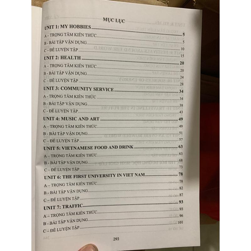Mua tại TiktokNội dung gồm có: Unit 1: My Hobbies Unit 2: Health Unit 3: Community Unit 4: Music and Art Unit 5: Vietnamese Food And Drink Unit 6: The First University In Viet Nam Unit 7: Traffic Unit 8: Films Unit 9: Festivals Around The World Unit 10: Sources Of Energy Unit 11: Travelling In The Future Unit 12: An Overcrowded World