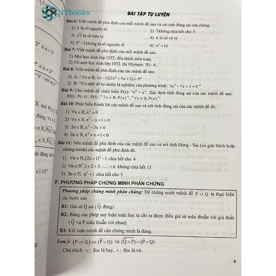1. Nội dung sách Tự học Toán học lớp 10: Tập 1: - Chương 1: Mệnh đề và tập hợp (5 chủ đề) - Chương 2: Bất phương trình - Hệ bất phương trình (4