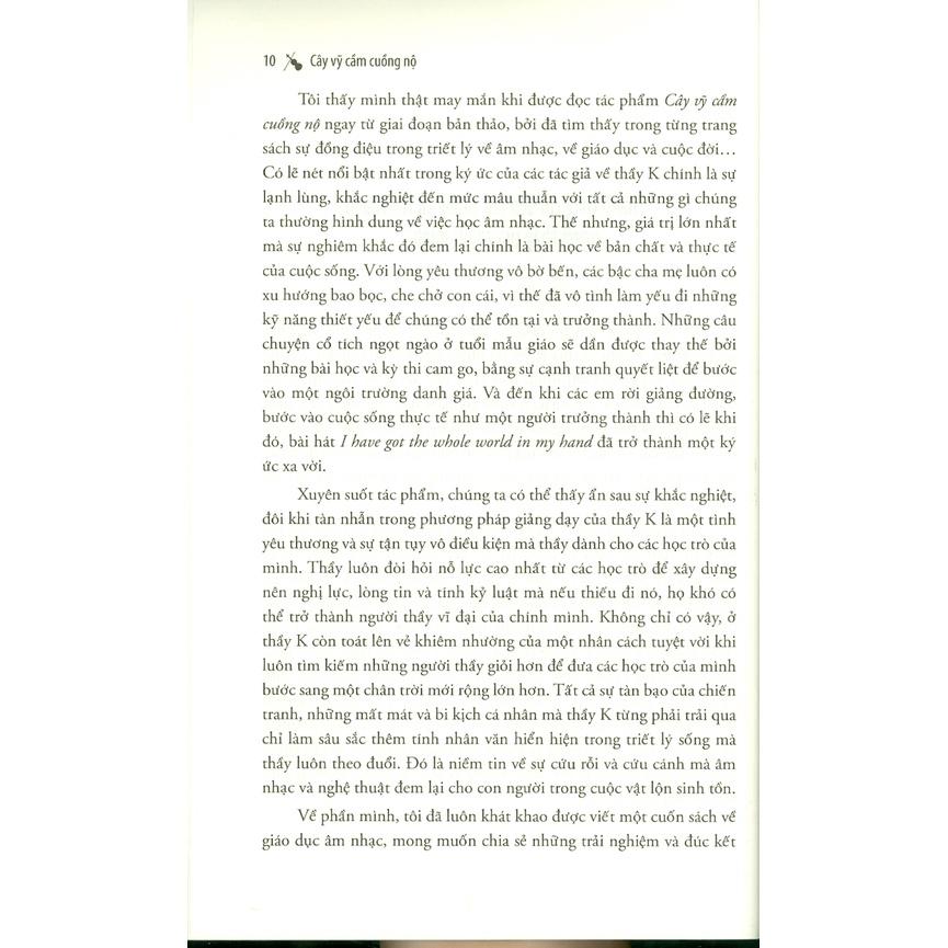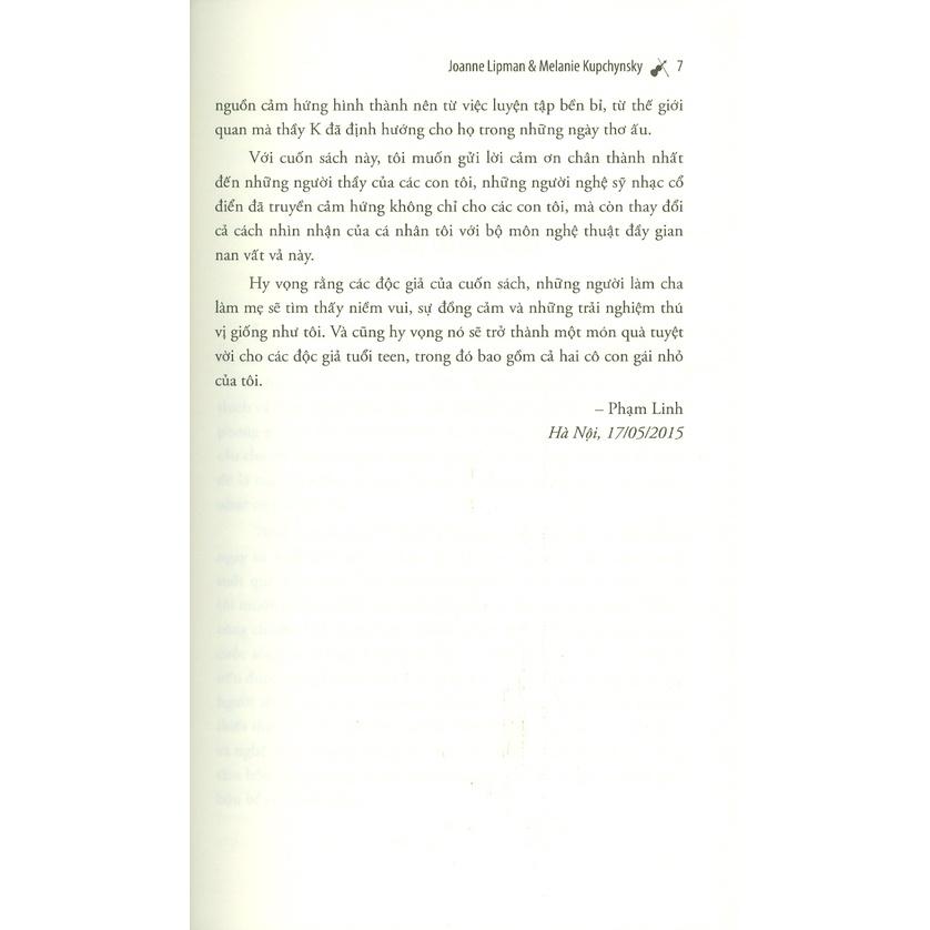 Cuốn sách được viết qua ngòi bút của một người là học trò cũ và một người là con gái ruột của thầy K. Với những góc nhìn khác biệt mà tương đồng và thấu hiểu về người thầy đáng kính trọng, họ chia sẻ về những kinh nghiệm mà họ đã có được qua quá trình học nhạc kiên trì và bền bỉ. Điều này không chỉ giúp họ rèn luyện được kỹ năng mà còn khiến họ trưởng thành hơn trong cuộc sống hiện tại."