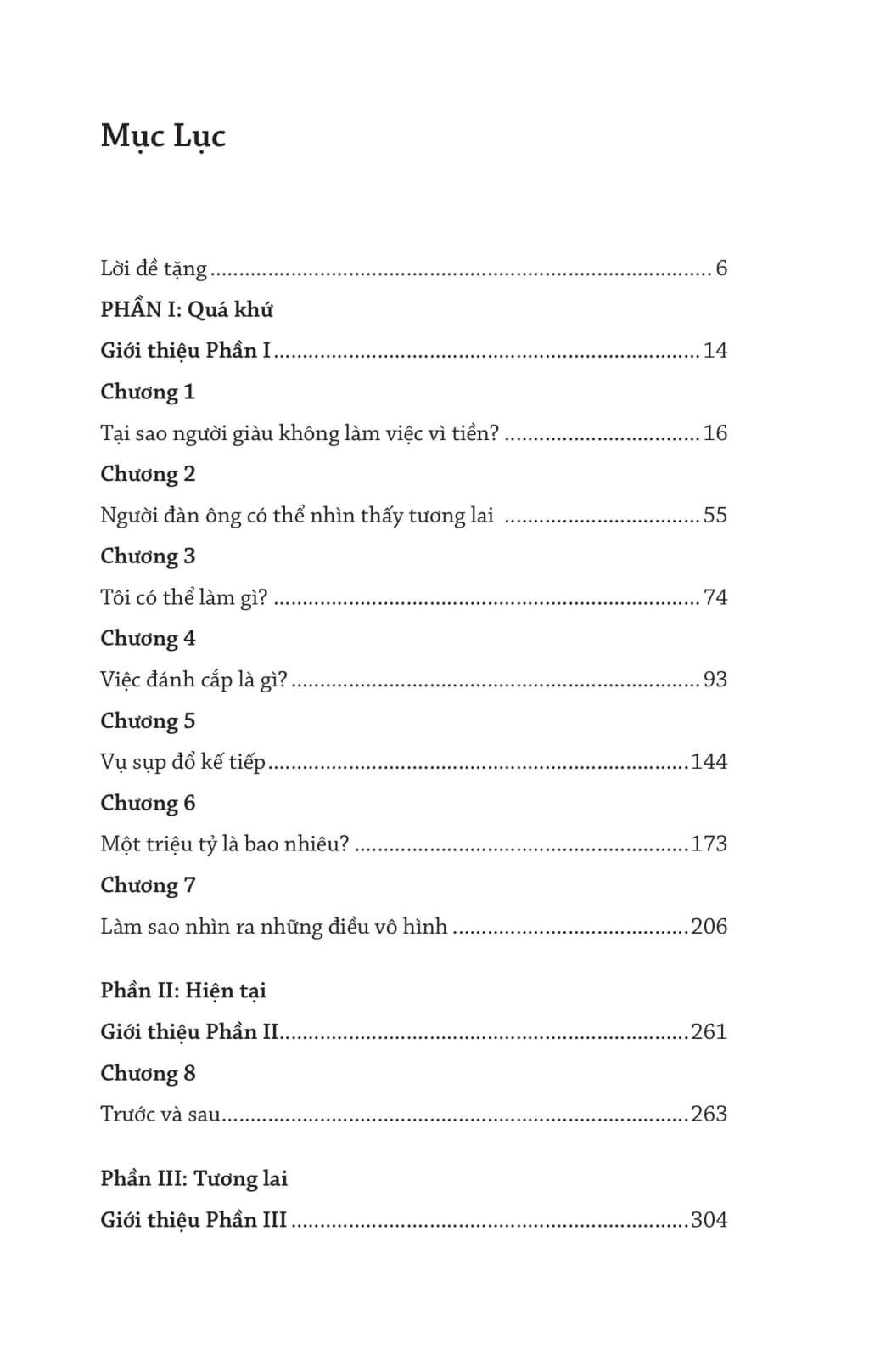 • TƯƠNG LAI: Bạn sẽ biết cách dẫn dắt bản thân và những người thương yêu vượt qua cuộc khủng hoảng tài chính đang lớn dần này. Nổi tiếng với tư cách là tác giả của Dạy con làm giàu, bộ sách tài chính cá nhân số một mọi thời đại và là tựa sách bán chạy nhiều năm do New York Times bình chọn, Robert Kiyosaki đã trở thành bậc thầy về giáo dục tài chính trên toàn thế giới. Năm 1997, Dạy con làm giàu đã gây chấn động đ.ịa cầu khi viết: "Ngôi nhà của bạn không phải là một tài sản" và "Người gửi tiết kiệm là những kẻ thua cuộc". Mười năm sau, vào 2007, khi thị trường bất động sản sụp đổ và các ngân hàng bắt đầu cho in hàng nghìn tỷ đô-la, lời cảnh báo của ông đã trở thành sự thật. Quyển sách này giải thích tại sao Robert lại có khả năng dự báo chính xác tương lai... nhưng quan trọng hơn, nó nói về cách thức bạn có thể trở thành người chiến thắng, chứ không phải là kẻ thua cuộc, bằng cách kiểm soát tương lai tài chính của bạn.